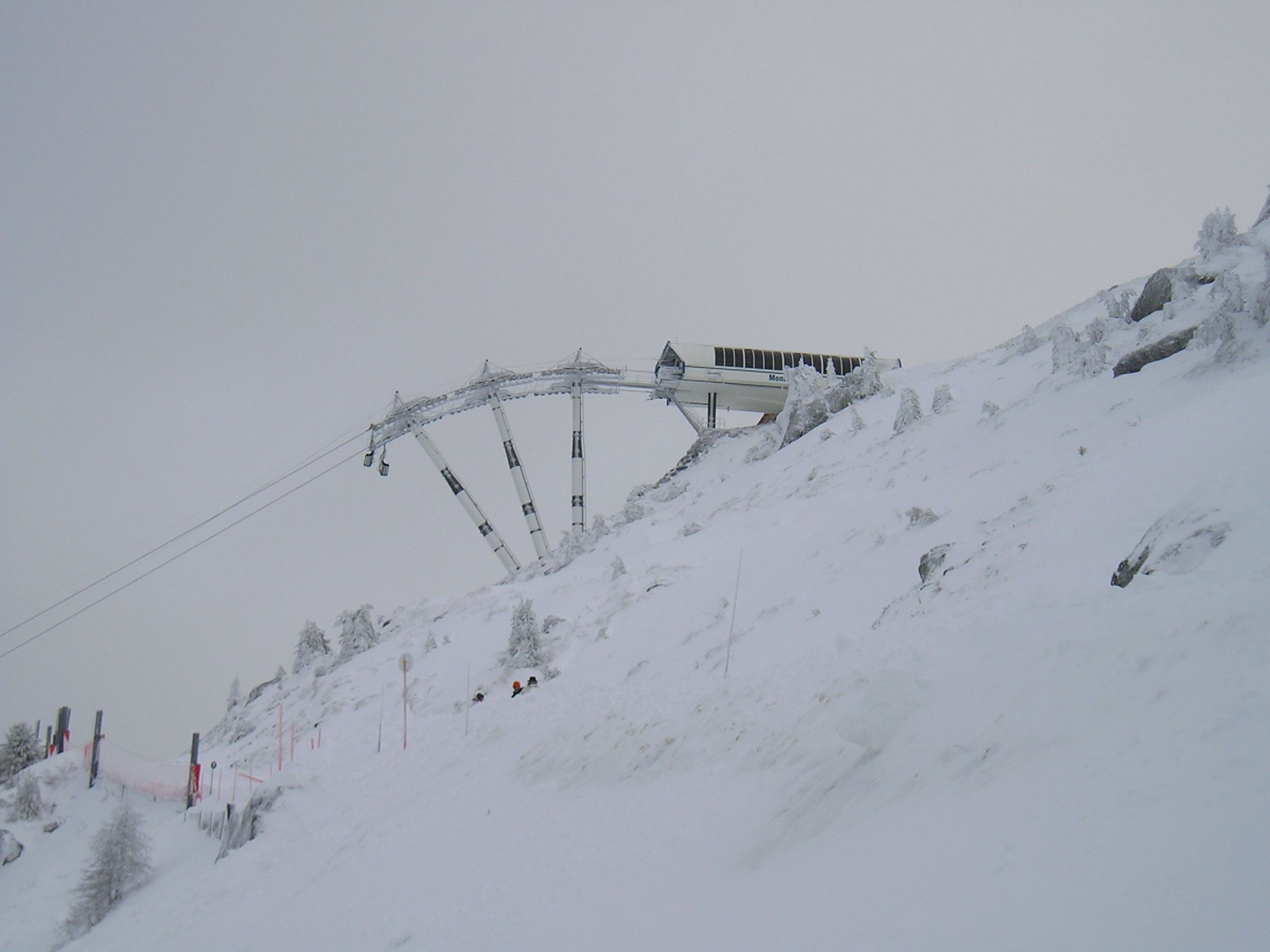 La gare inférieure vue de la piste est assez discrete. les P1 et P2 sont assez bas. Par contre, la gare supérieure est plus encombrante sur la "sky line".