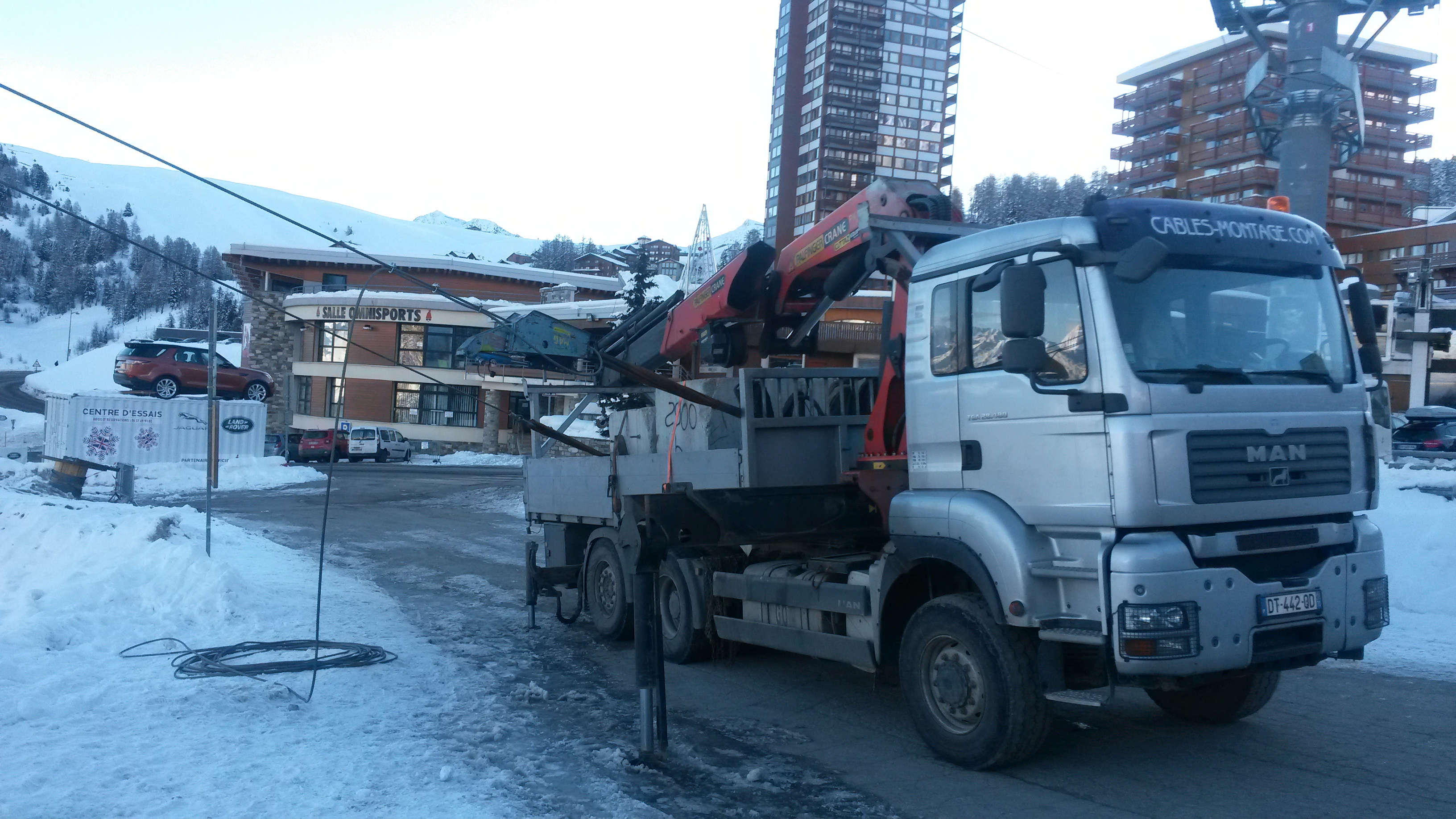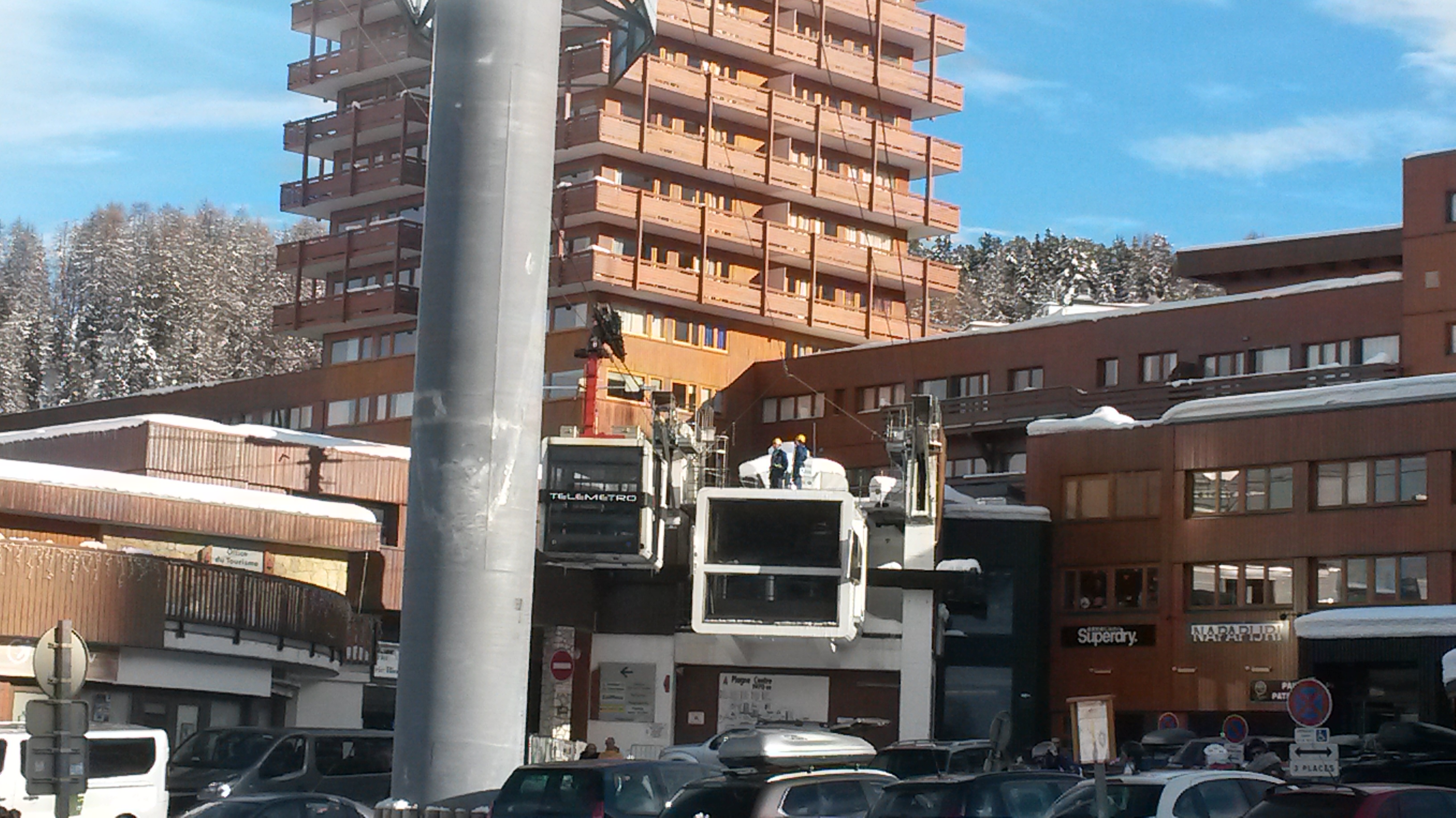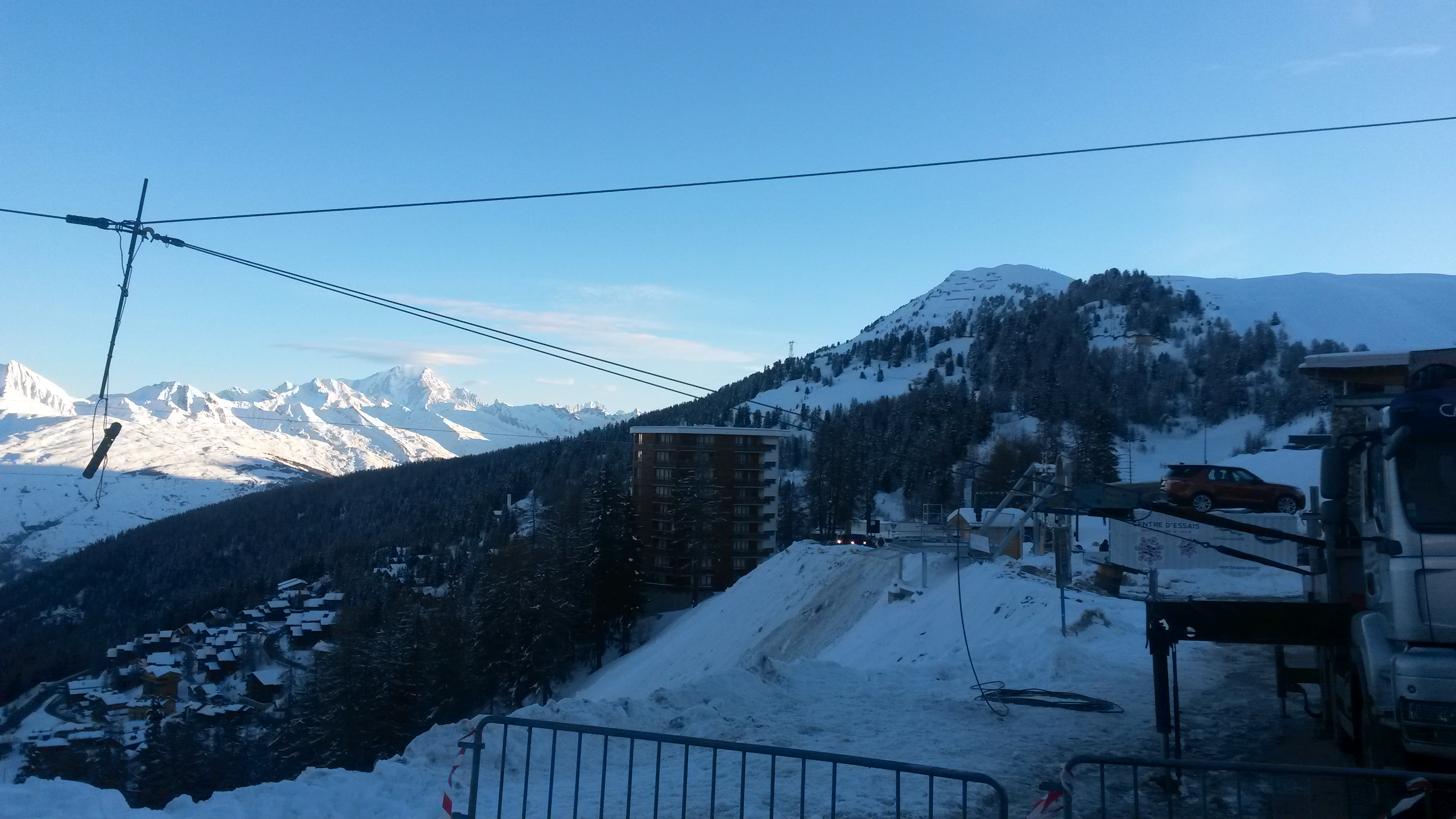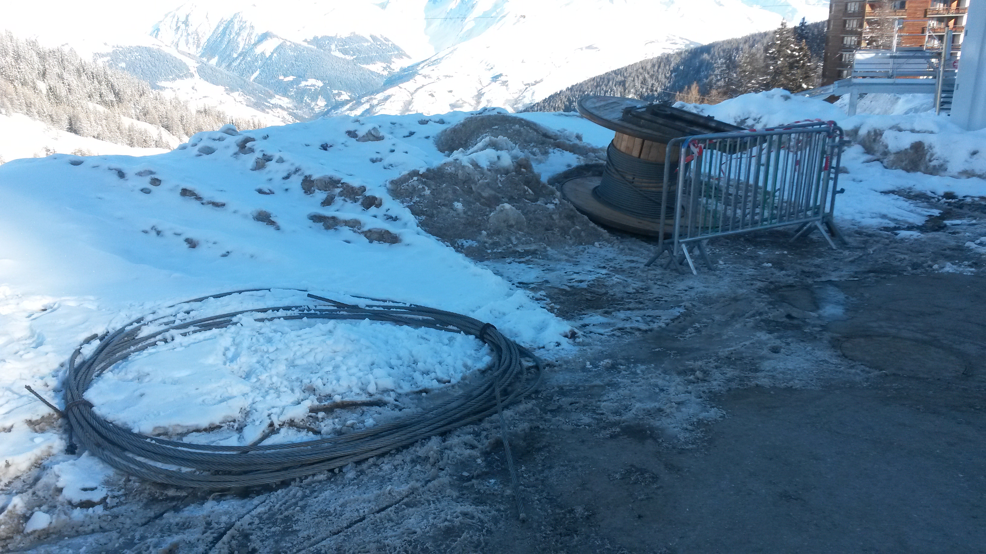 Des travaux sur l'un des câbles du télémétro aujourdhui sur plagne centre et premiers essais de télécabine.