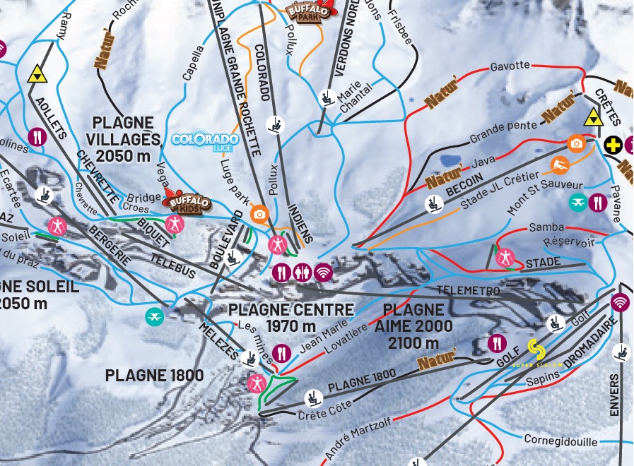Peu de changement il me semble sur le plan 2021 à l'exception du nouveau tapis de Plagne Centre : "INDIENS"