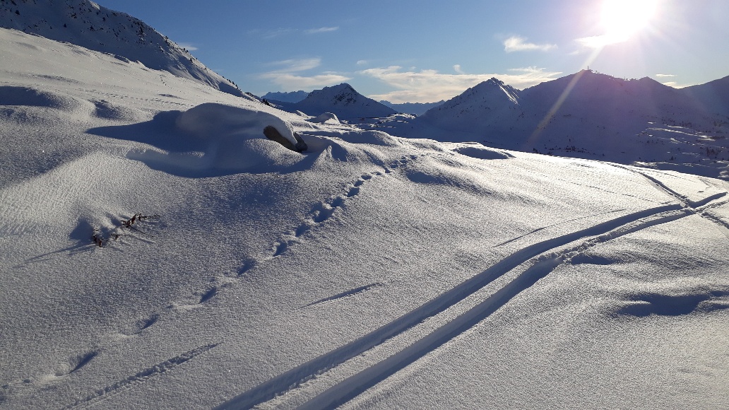 Avec le grand soleil et la neige fraîche qu’il y avait ce matin j’ai pas pu résister à l’envie de sortir les skis de pistes.