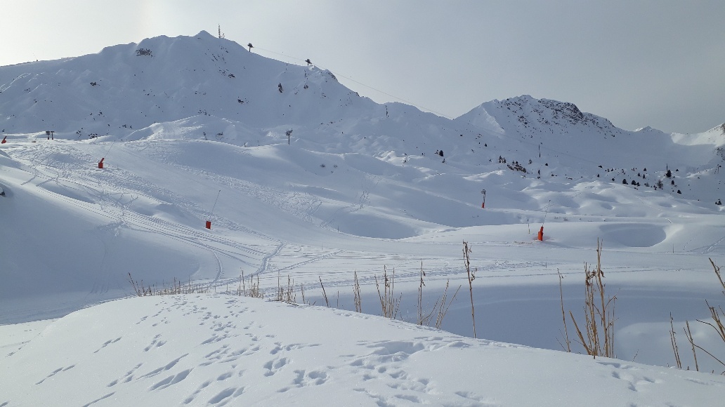 La hauteur de neige s’est bien améliorée ces derniers jours. 70-80cm de neige fraîche à 2000m voir presque 1m dans certaines pentes et combes