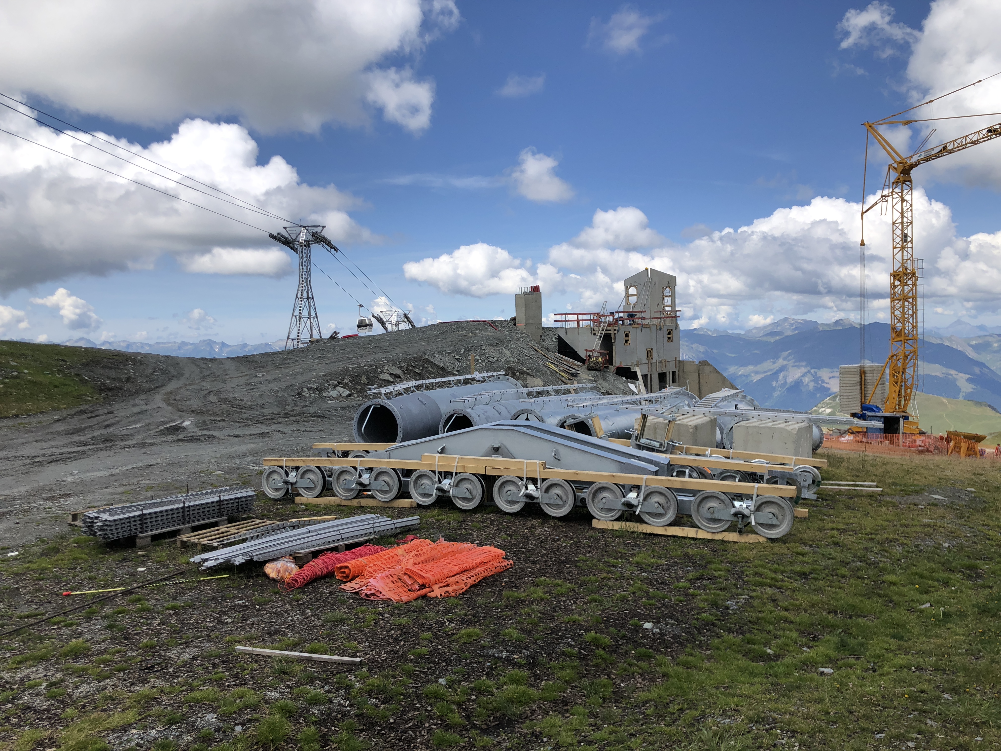 Et ne pas oublier les équipes qui courent de massif en massif pour monter sur les pylônes et les assembler. C'est un sacré ballet très minuté...