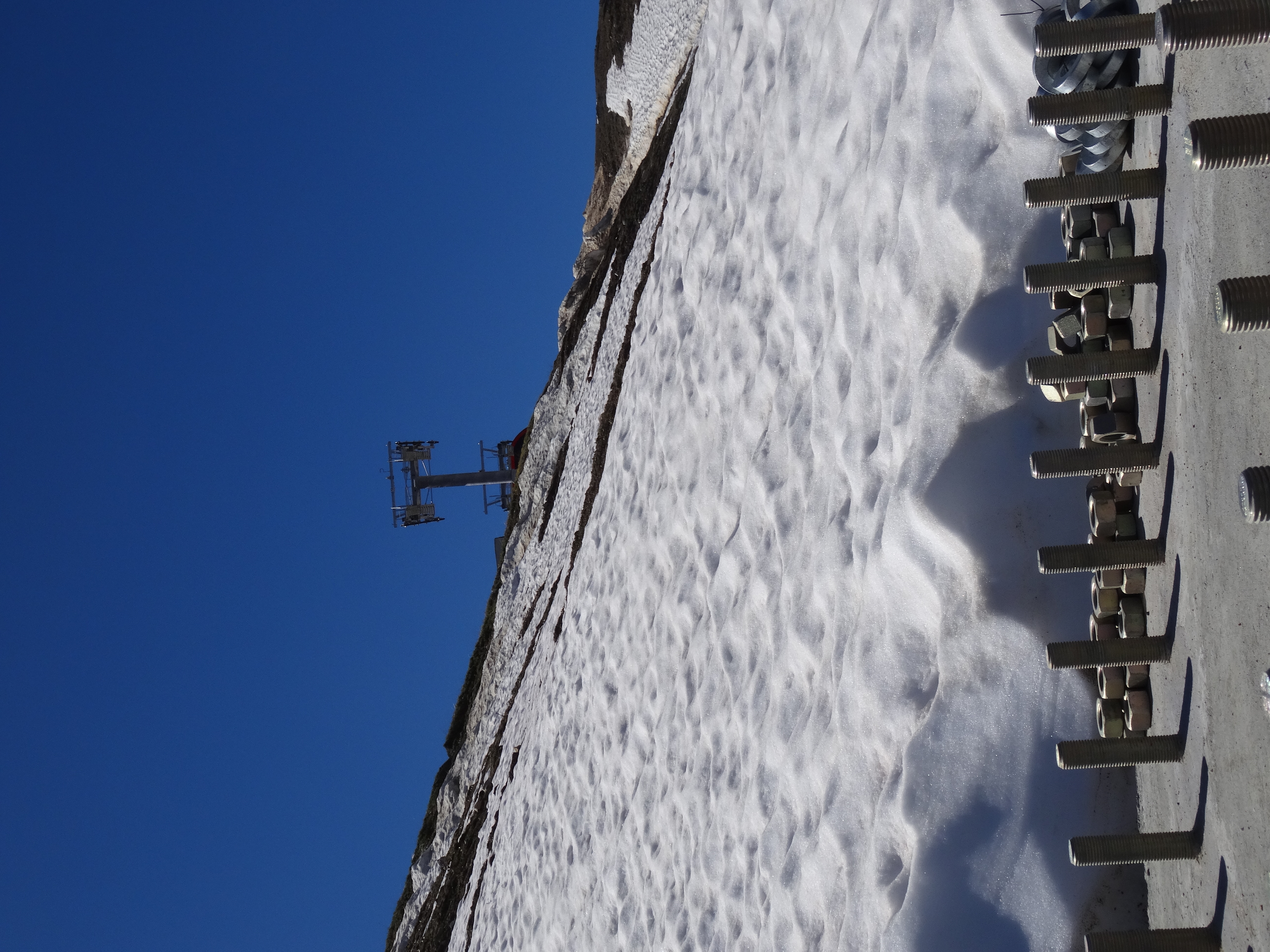 Certains n'ont pas encore été hélitreuillés, notamment sous la gare intermédiaire de Forcle. On peut voir des massifs de bétons avec les écrous et contre-écrous prêts à être vissés.