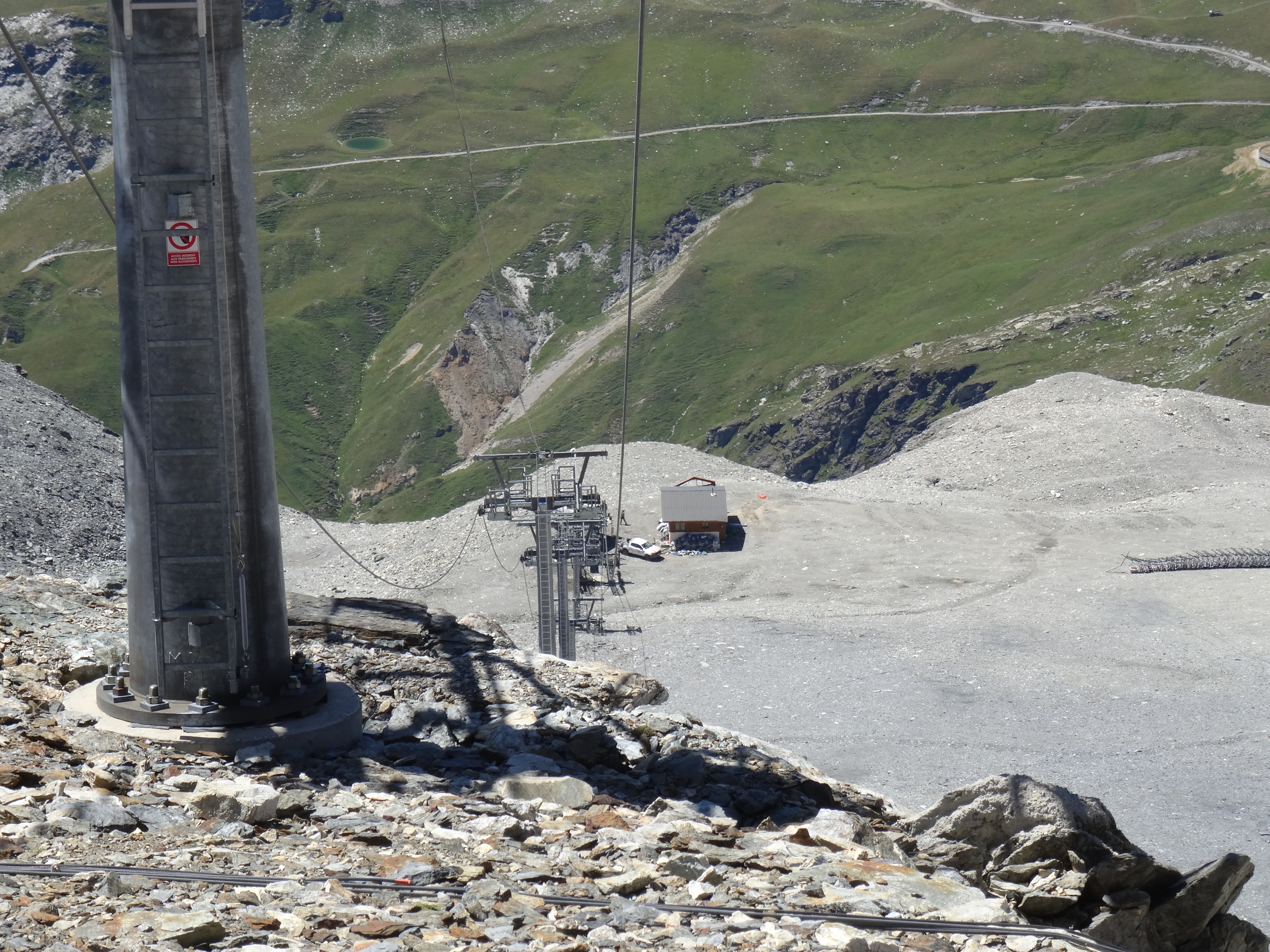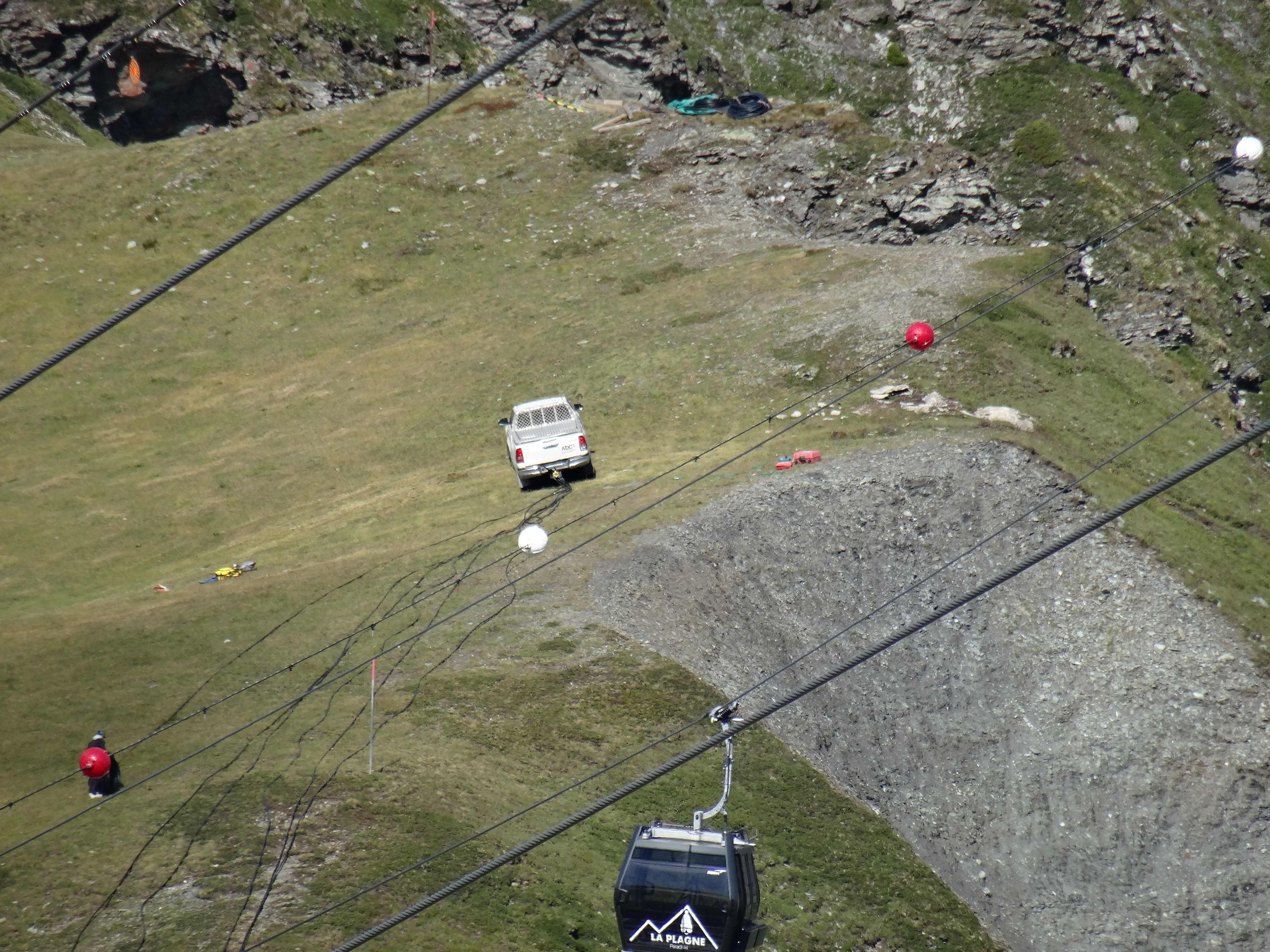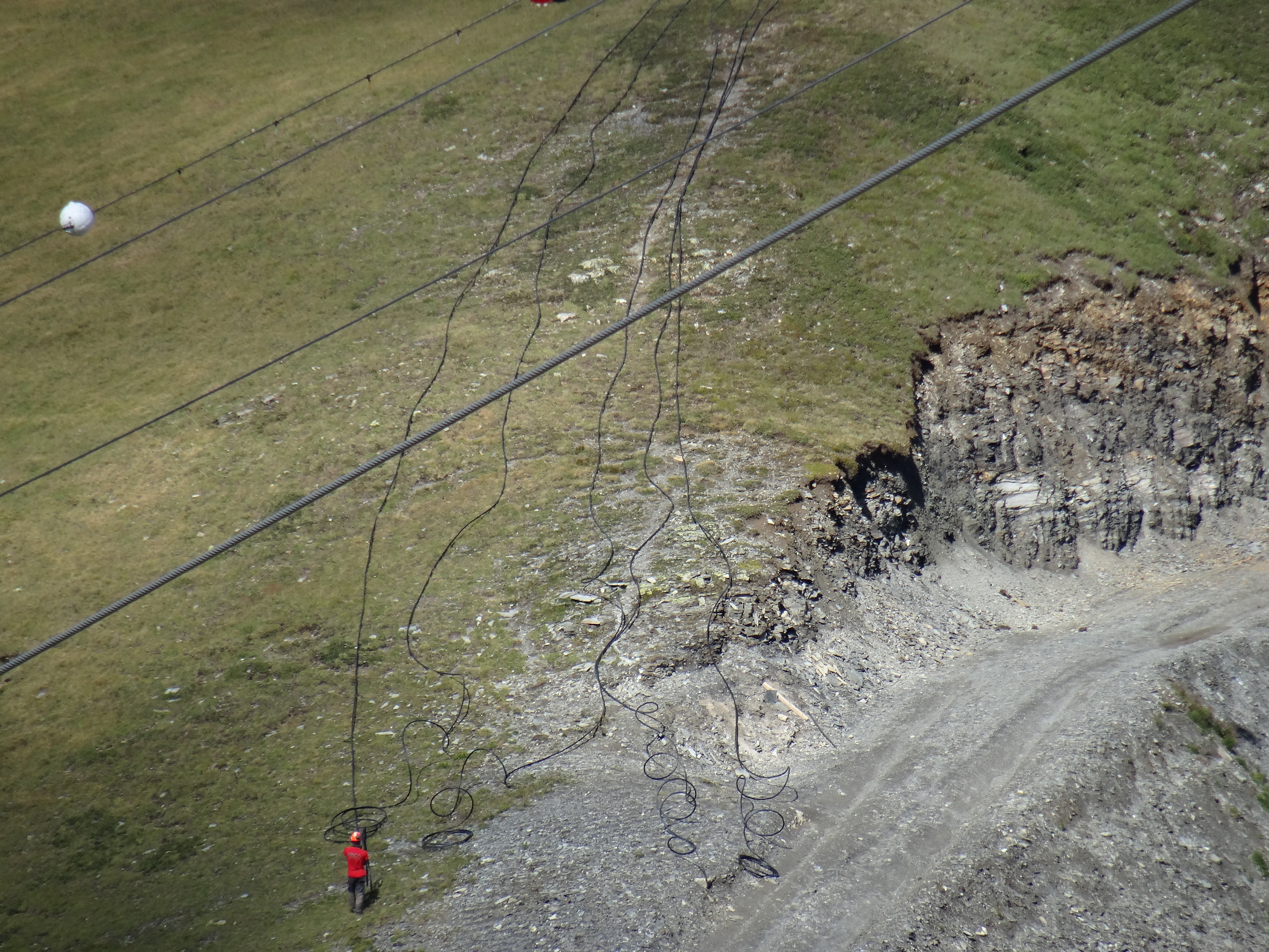 Il y a aussi de l'activité au col de la Chiaupe. Des câbles ont été descendus en voiture depuis RdM et ont ensuite été déroulés sous le premier tronçon de la TC des Glaciers. Aucune idée du but de la manœuvre.