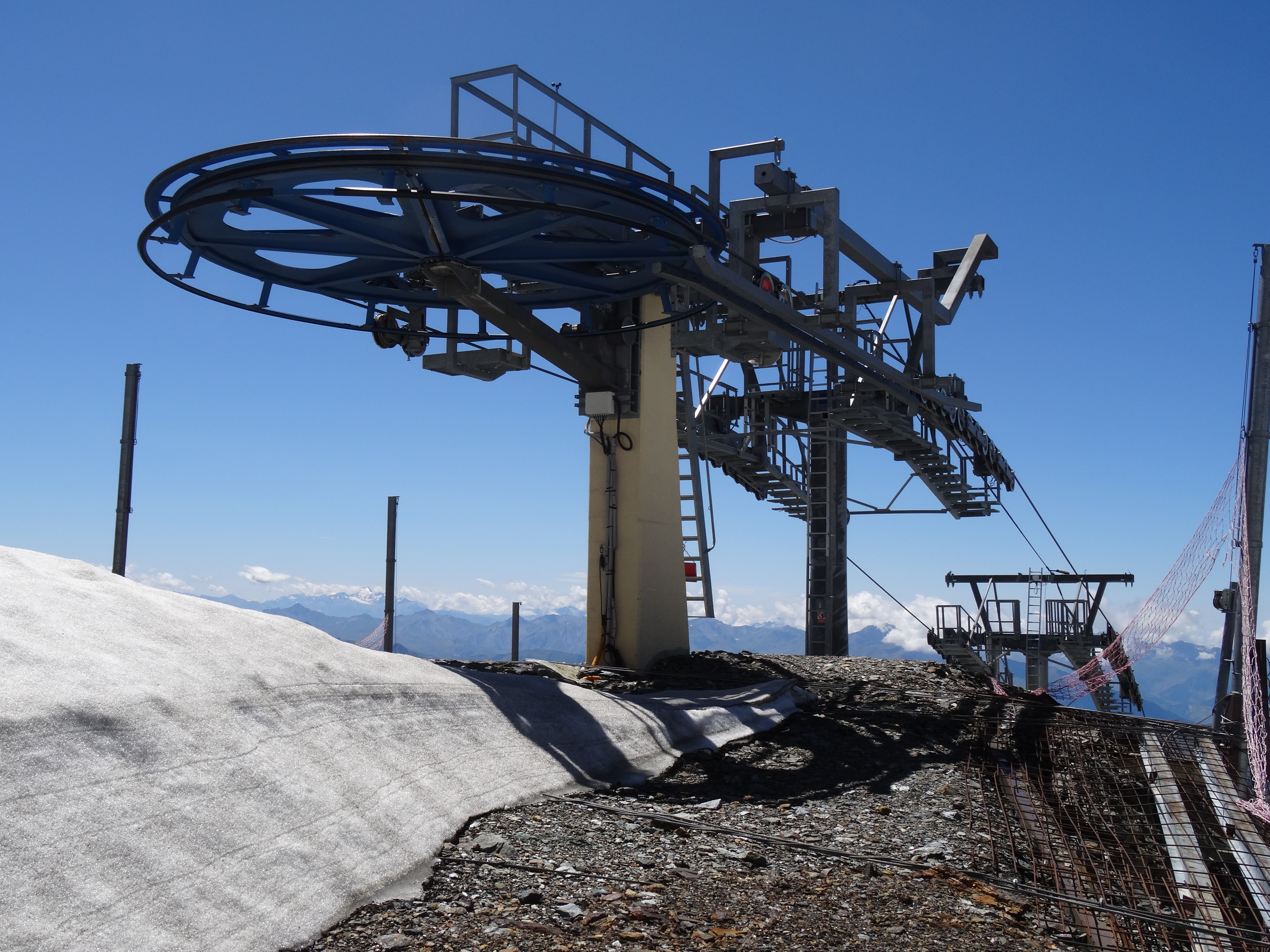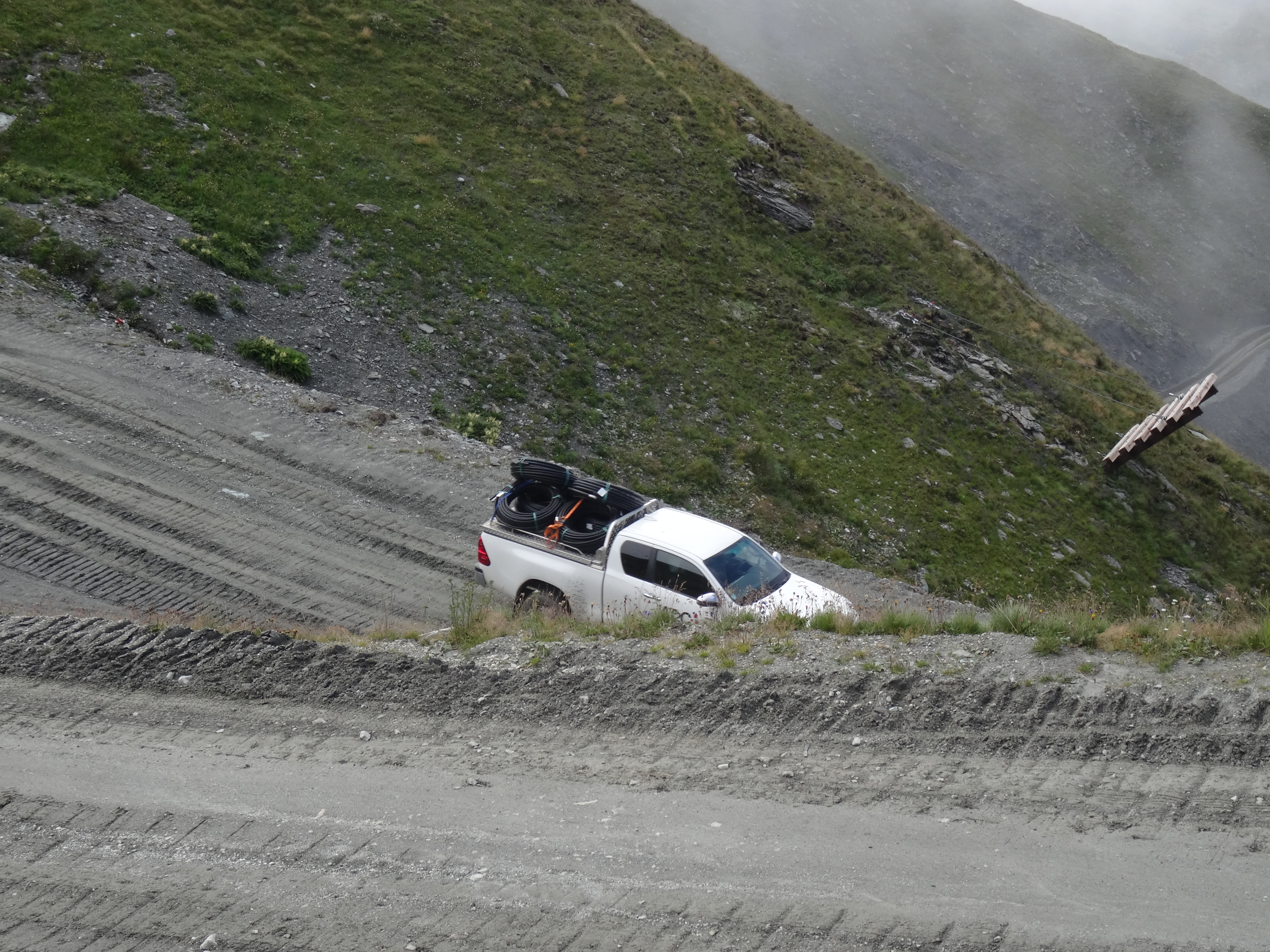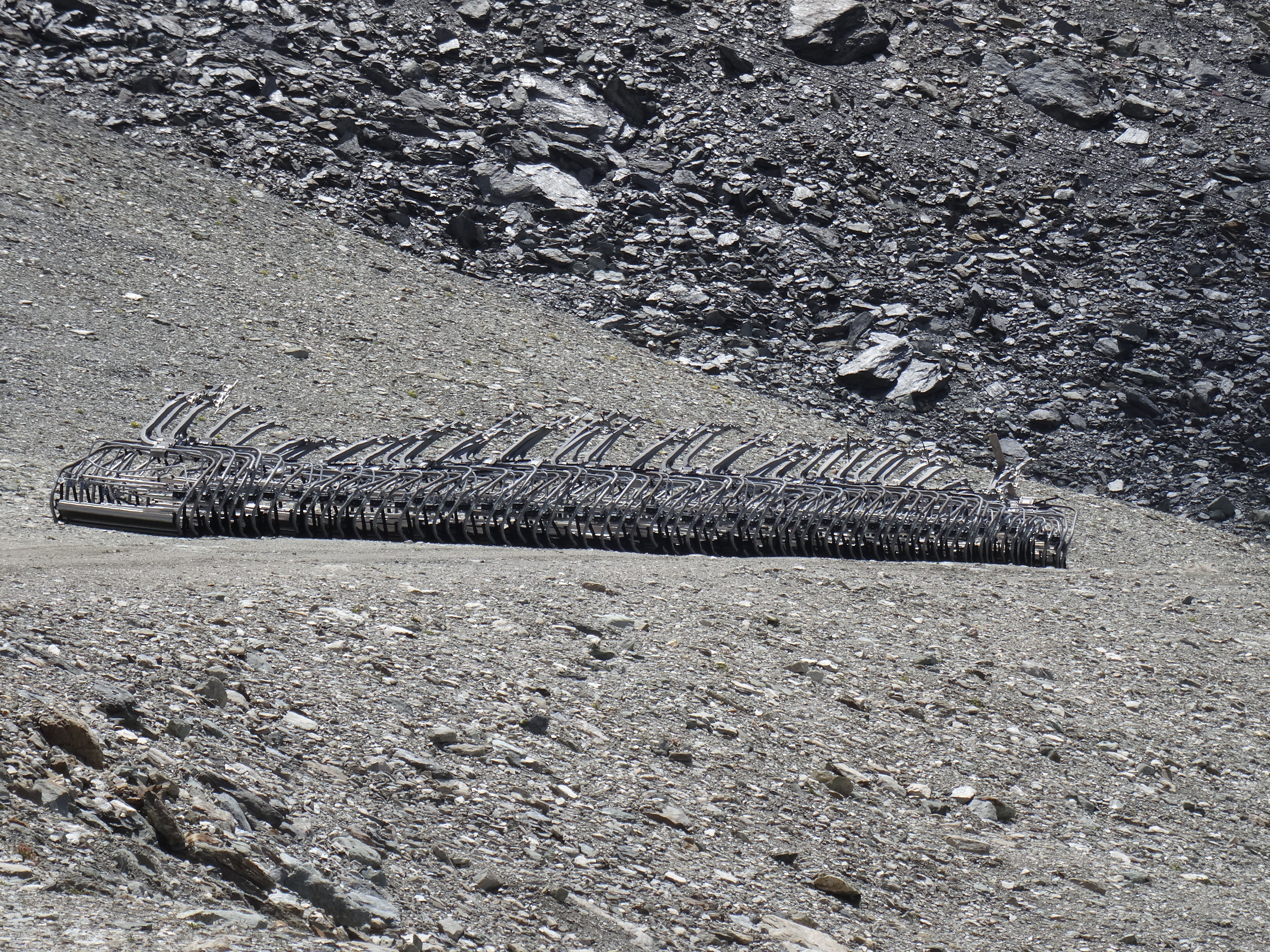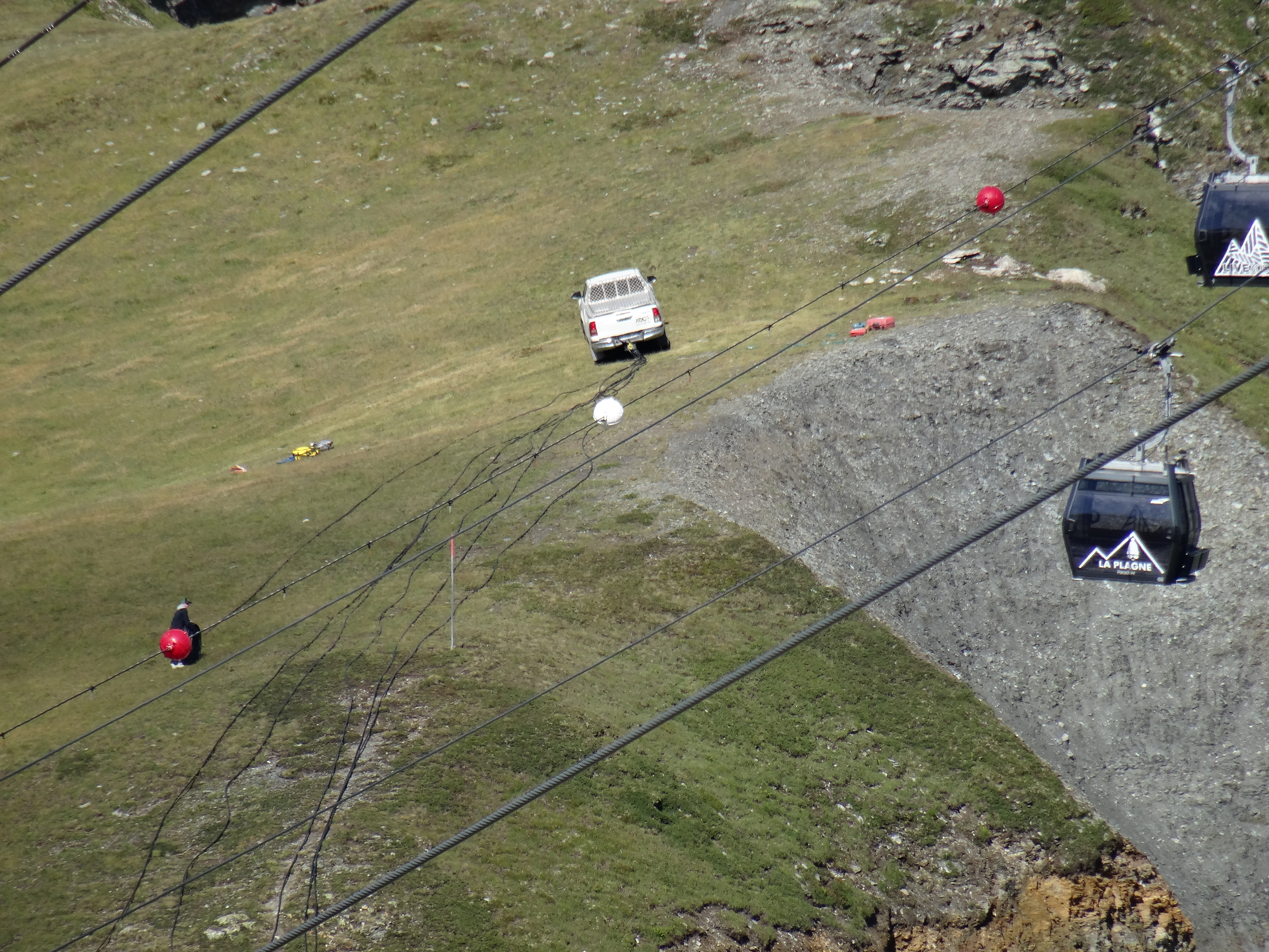 Il y a aussi de l'activité au col de la Chiaupe. Des câbles ont été descendus en voiture depuis RdM et ont ensuite été déroulés sous le premier tronçon de la TC des Glaciers. Aucune idée du but de la manœuvre.