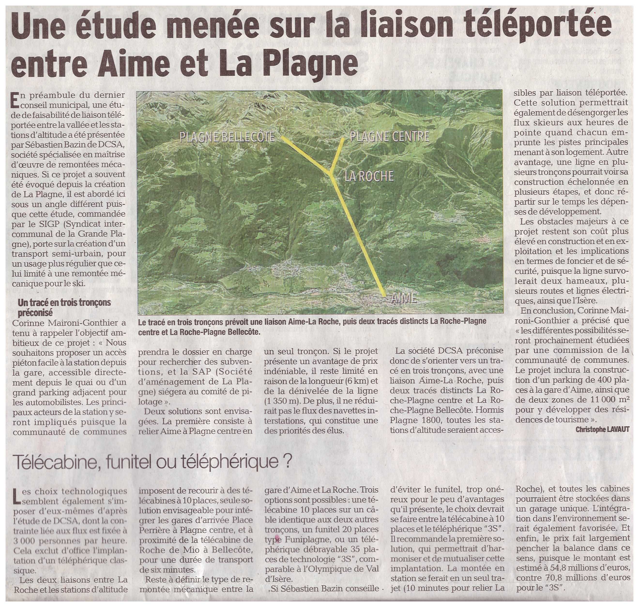 Un article du Dauphiné de ce jour parle du projet de liaison entre Aime et les stations de la Plagne. j'ai scanné l'article pour ceux qui n'habitent pas dans le coin: