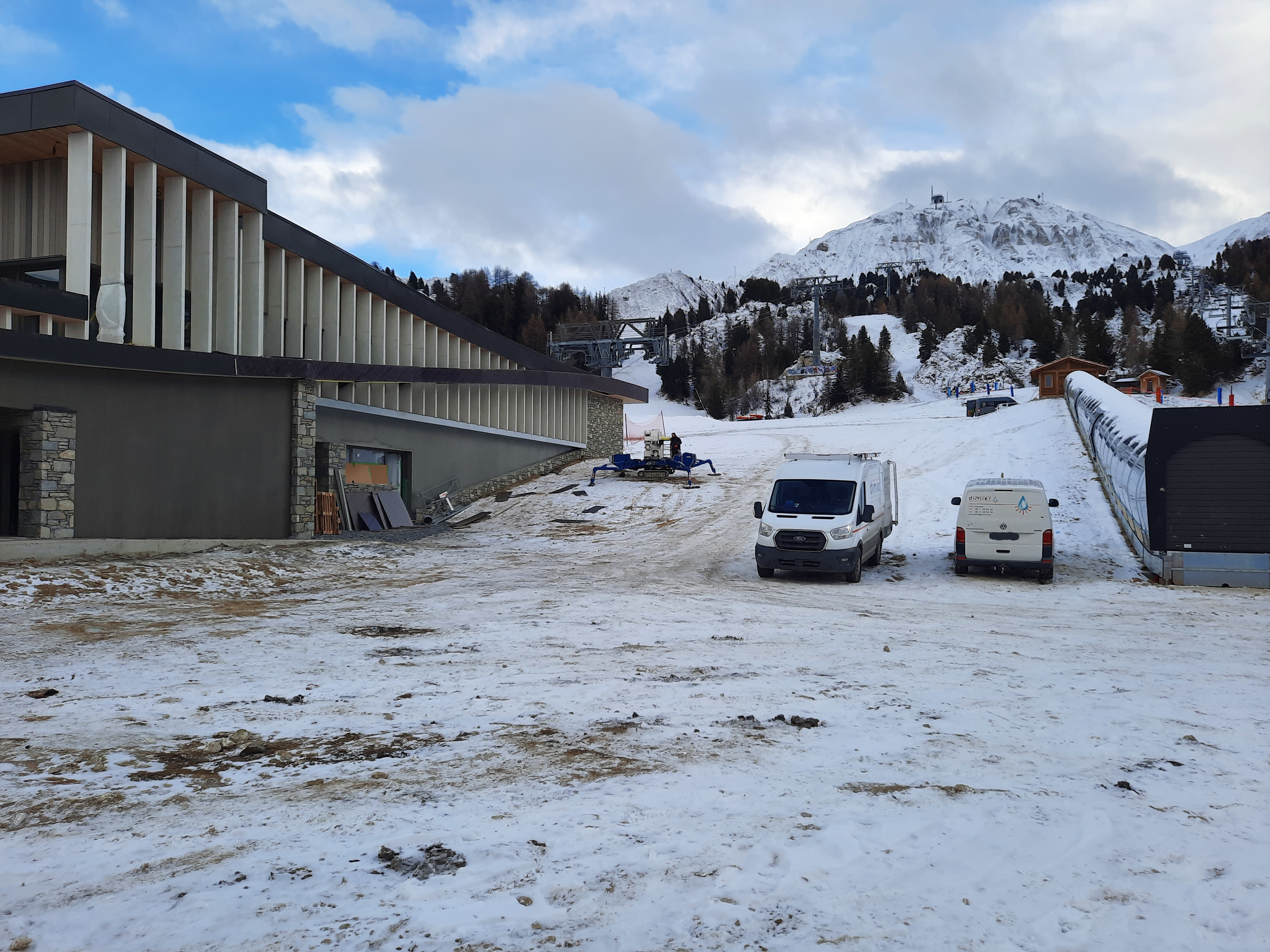 à priori mieux puisque avec les travaux très important de la gare de départ du Funi outre les locaux pour la SAP, il y a également une nouvelle entrée pour prendre les cabines justement du côté ouest en venant du secteur Becoin. Donc un peu moins de chemin à faire et pas besoin de contourner le bâtiment