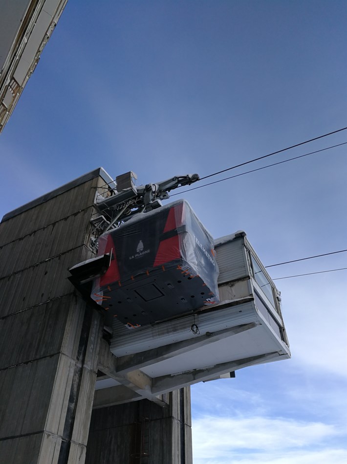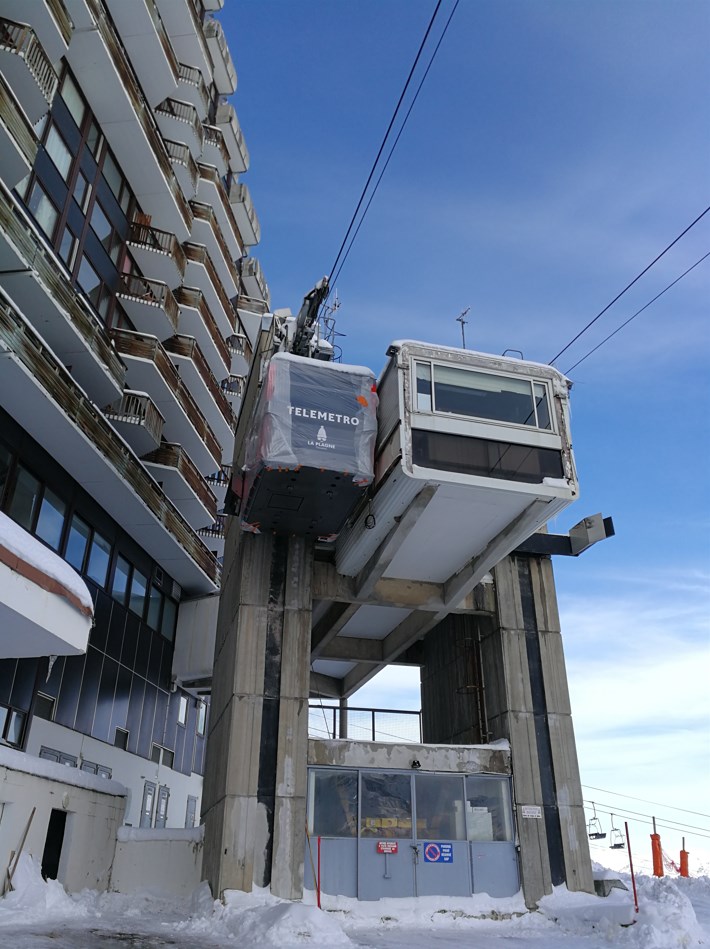 Voici quelques photos des nouvelles cabines du Télémétro... pas encore déballées, que ce soit à Aime 2000 ou à Centre.