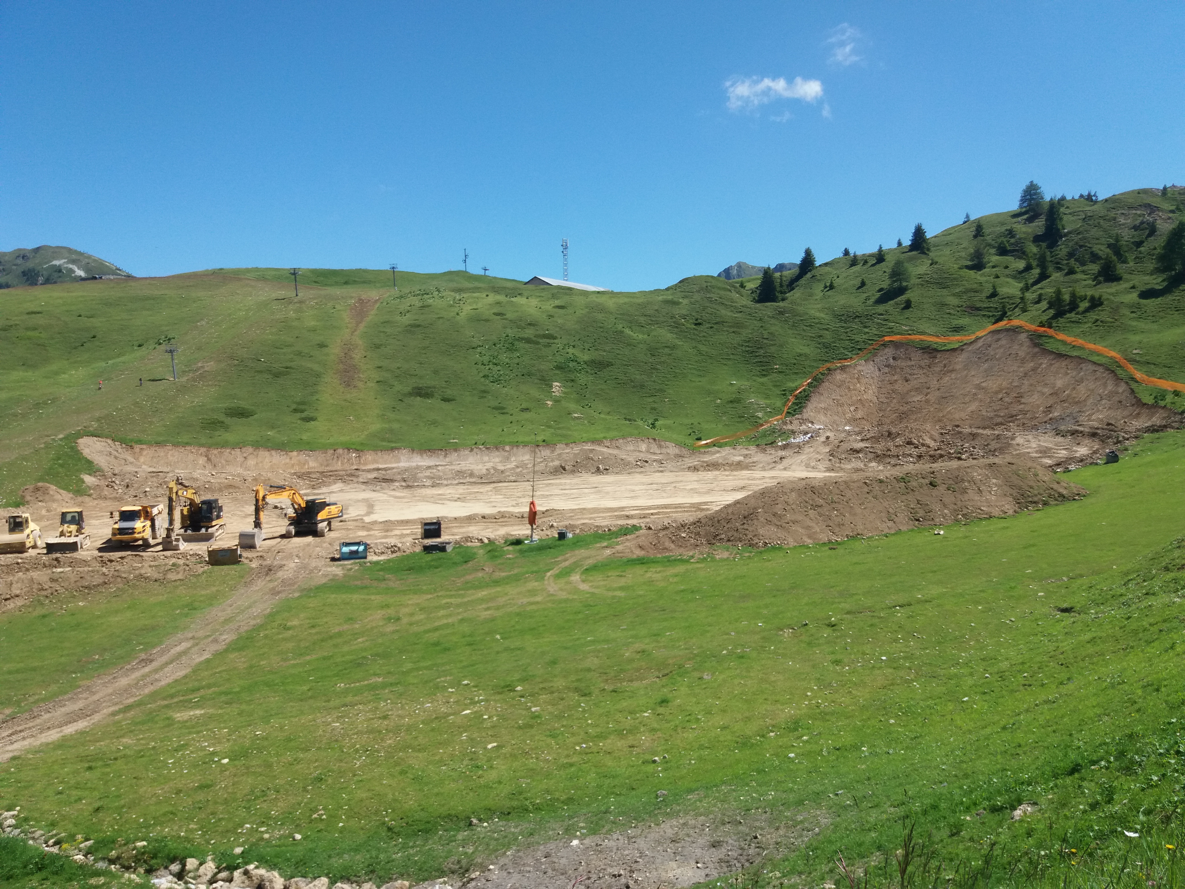 On voit aussi la création d'un chemin vtt pour descendre sur Plagne Soleil