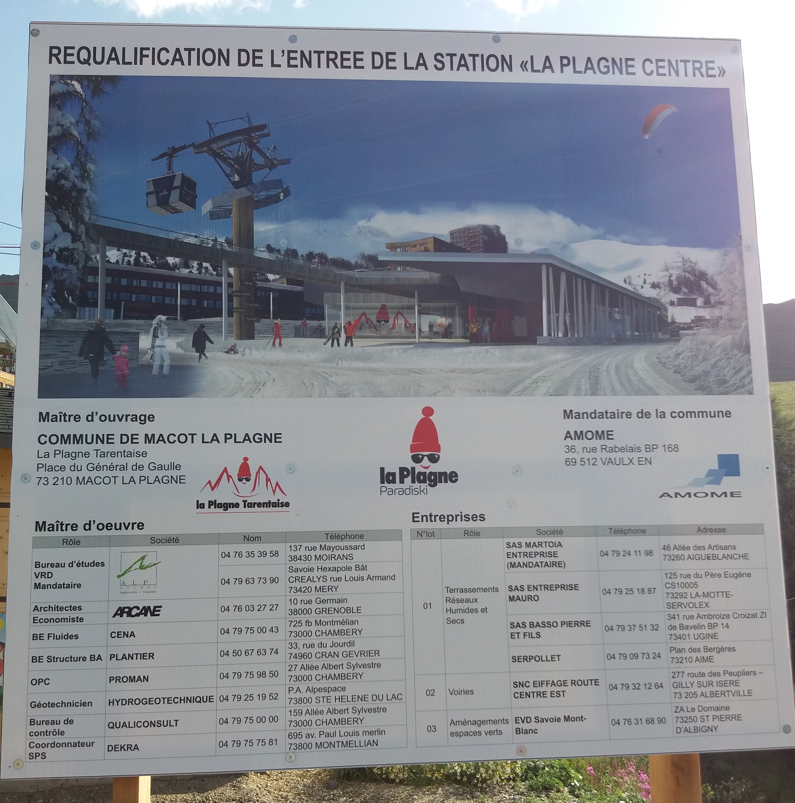 Monsieur le maire rappelle que la commune de Macot la Plagne a engagé un projet de restructuration de la place Albert Perrière à Plagne Centre dans le prolongement de la réhabilitation des galeries de Plagne Centre, et notamment la modernisation de l’espace public de Plagne Centre par la requalification de la place Perrière.