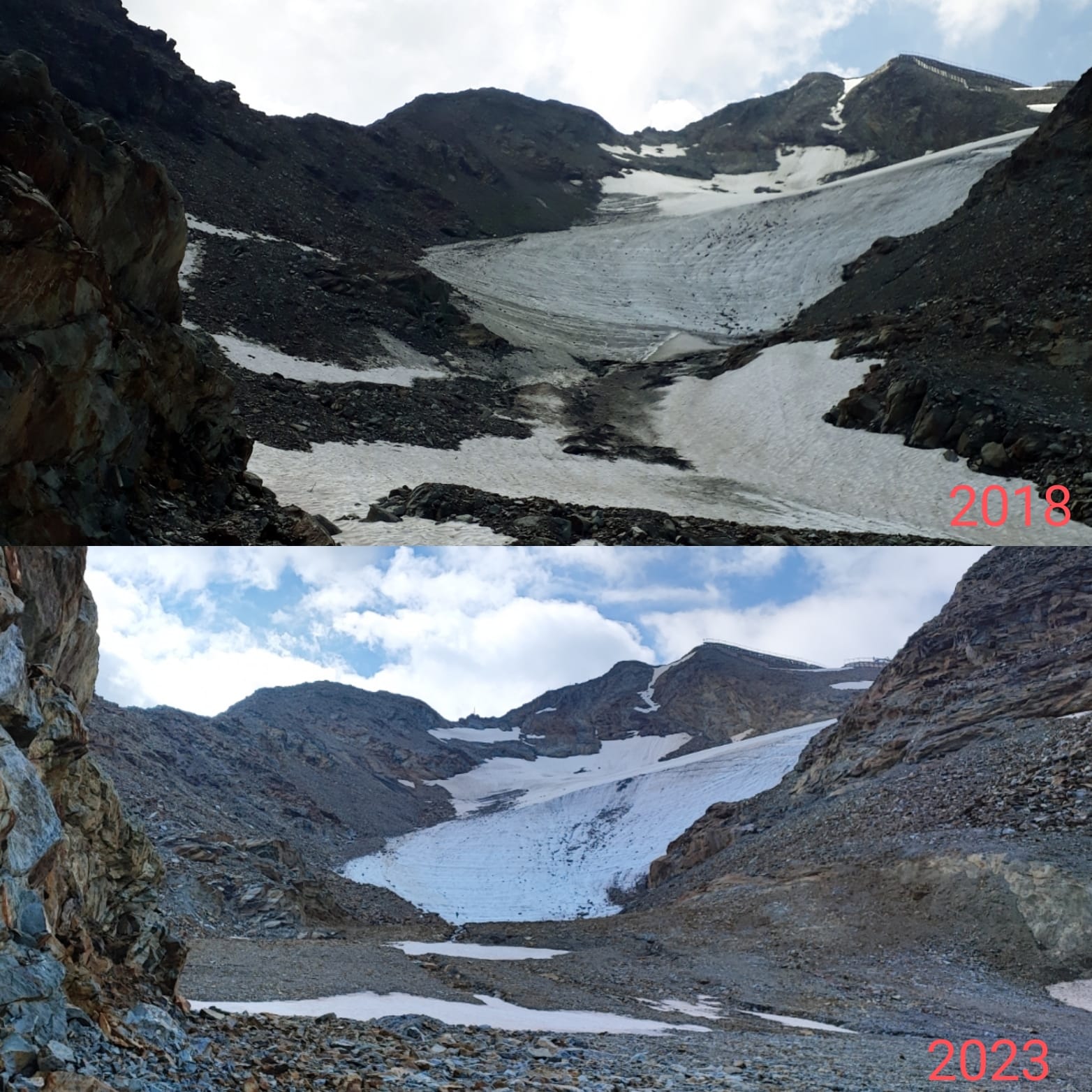 La fonte du glacier est visible depuis 46 ans même en rajoutant les 2 mètres manquants de ce début de saison. Le dome glaciaire a disparu.