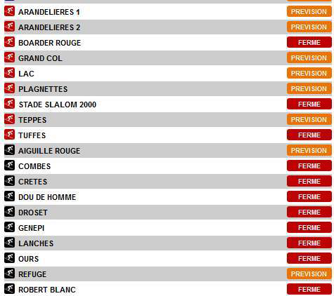 Voici les prévisions d'ouverture annoncées par SKIPLAN pour les pistes Rouges et Noires :