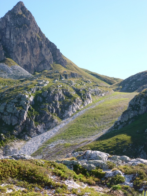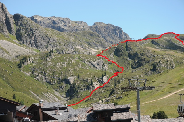 Il s'agit en fait de monter par le vallon qui débute au dessus des tennis de BP et qui longe la crête des Bourtes sur la gauche. Sentier dédié au départ à l'entretien de la zone de captation, puis vraiment sauvage ensuite, pour monter par des couloirs assez abrupts. On arrive au bas du mur des Sources. Il suffit ensuite de monter un peu pour atteindre le lac des Blanchets sur son côté "interdit au public"... Mais bon.