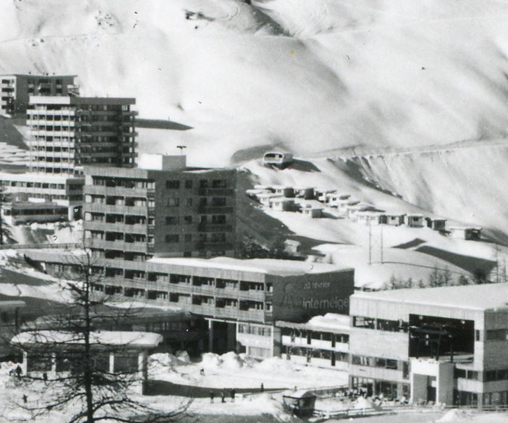 Dans cet article il y'a 2 photos de structure préfabriquée qui avait été installée à la Plagne à la fin des années 60 :