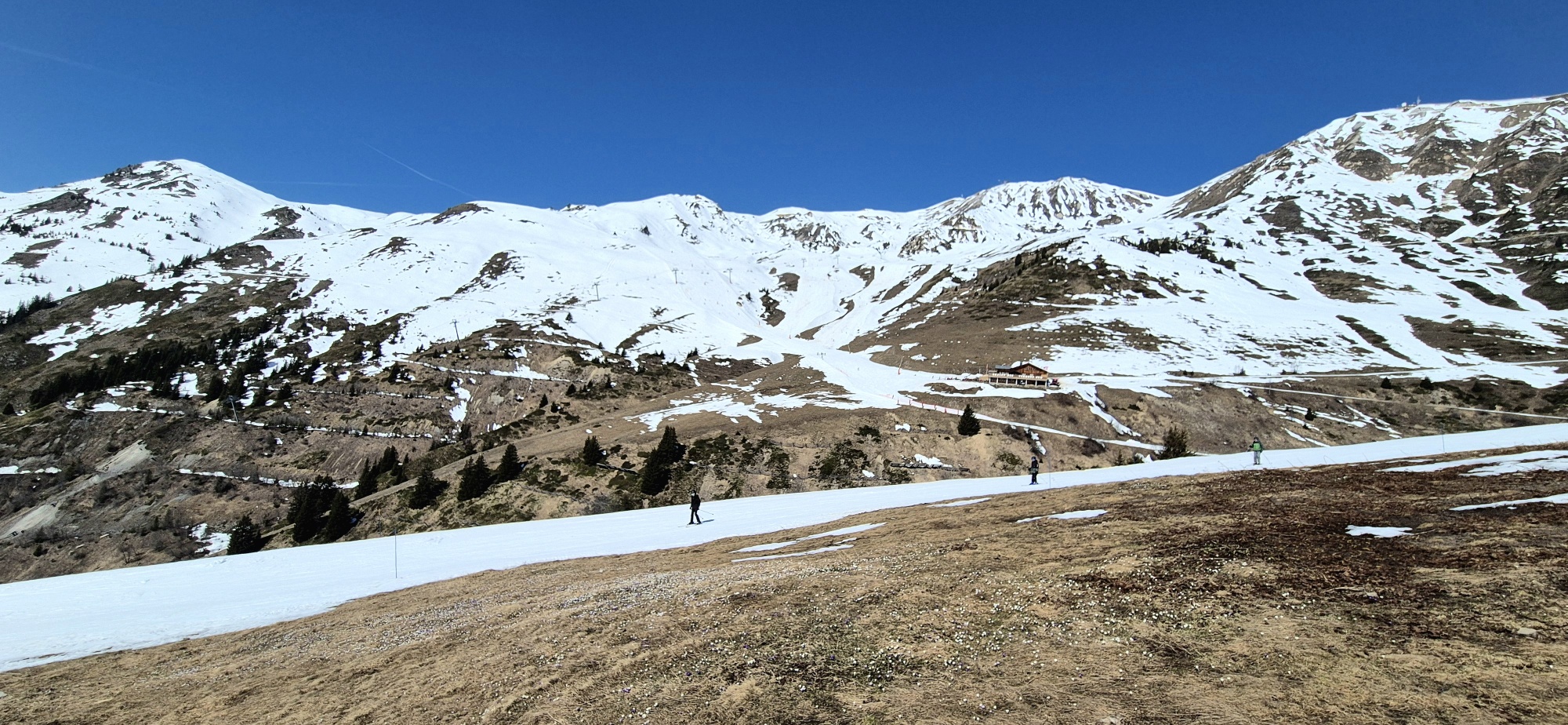 c'est vrai ,il y a encore pas mal de neige!pourtant il n'y a eu guère de grosses chutes cette saison,mais une dizaine de cm par ci par là,comme encore mercredi dernier.En tout cas,semaine de rêve,avec un domaine presque désert,peu skié.dans ces conditions ,la neige de printemps,c'est juste un régal!