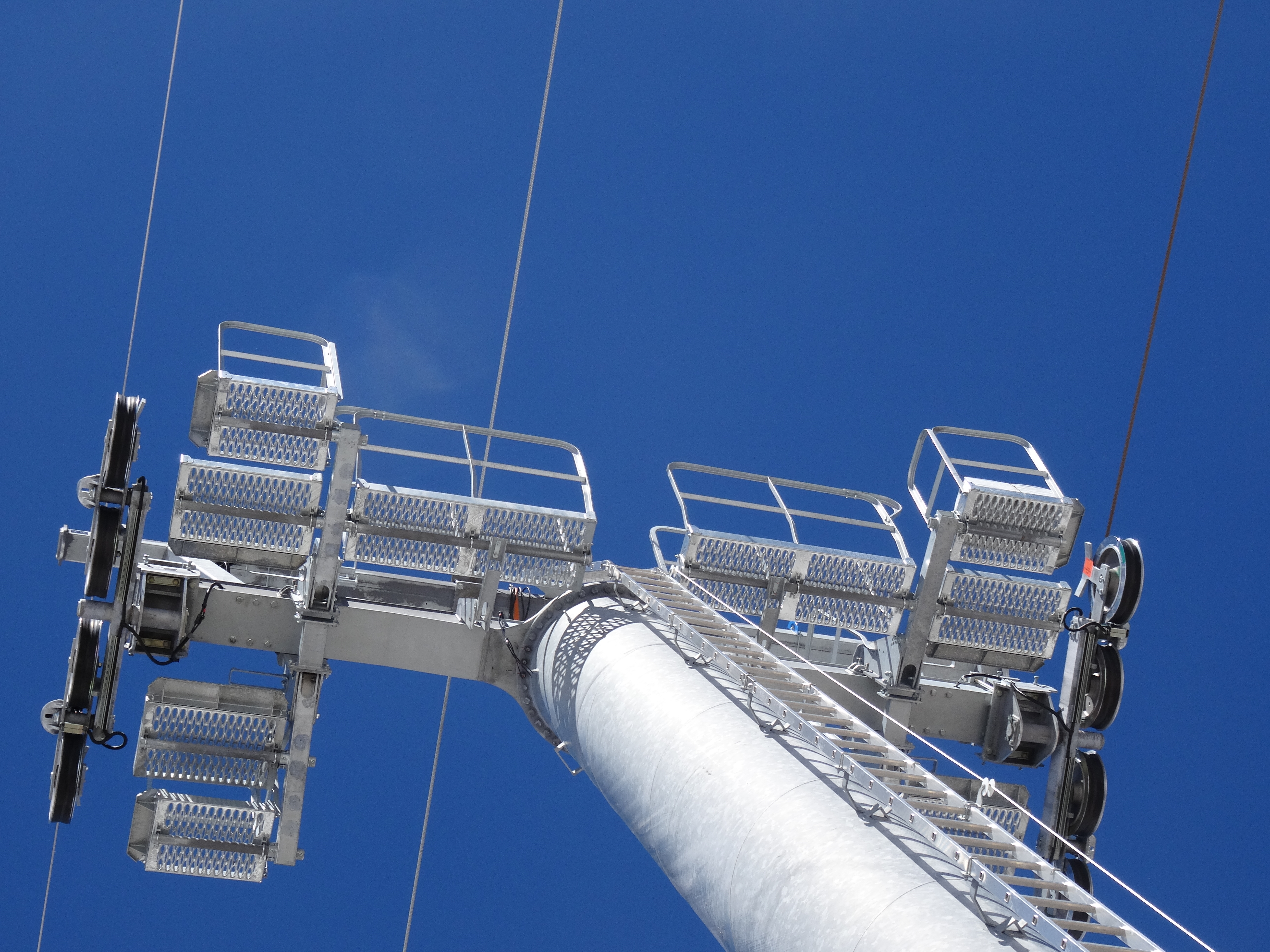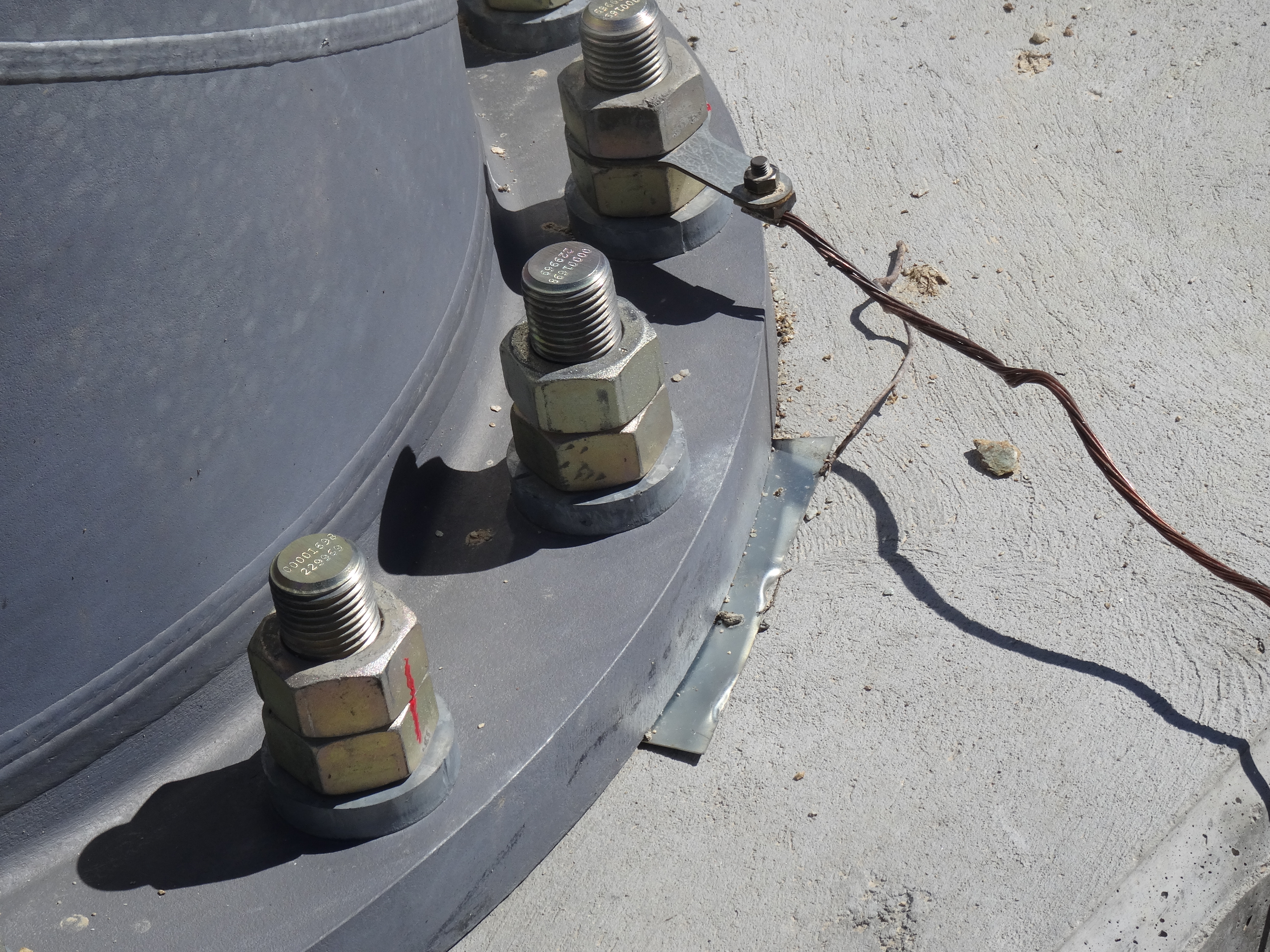 J'ai remarqué que certains pylônes du tronçon n°2 sont équipés de "cales" entre le fut du pylône et le massif de béton.