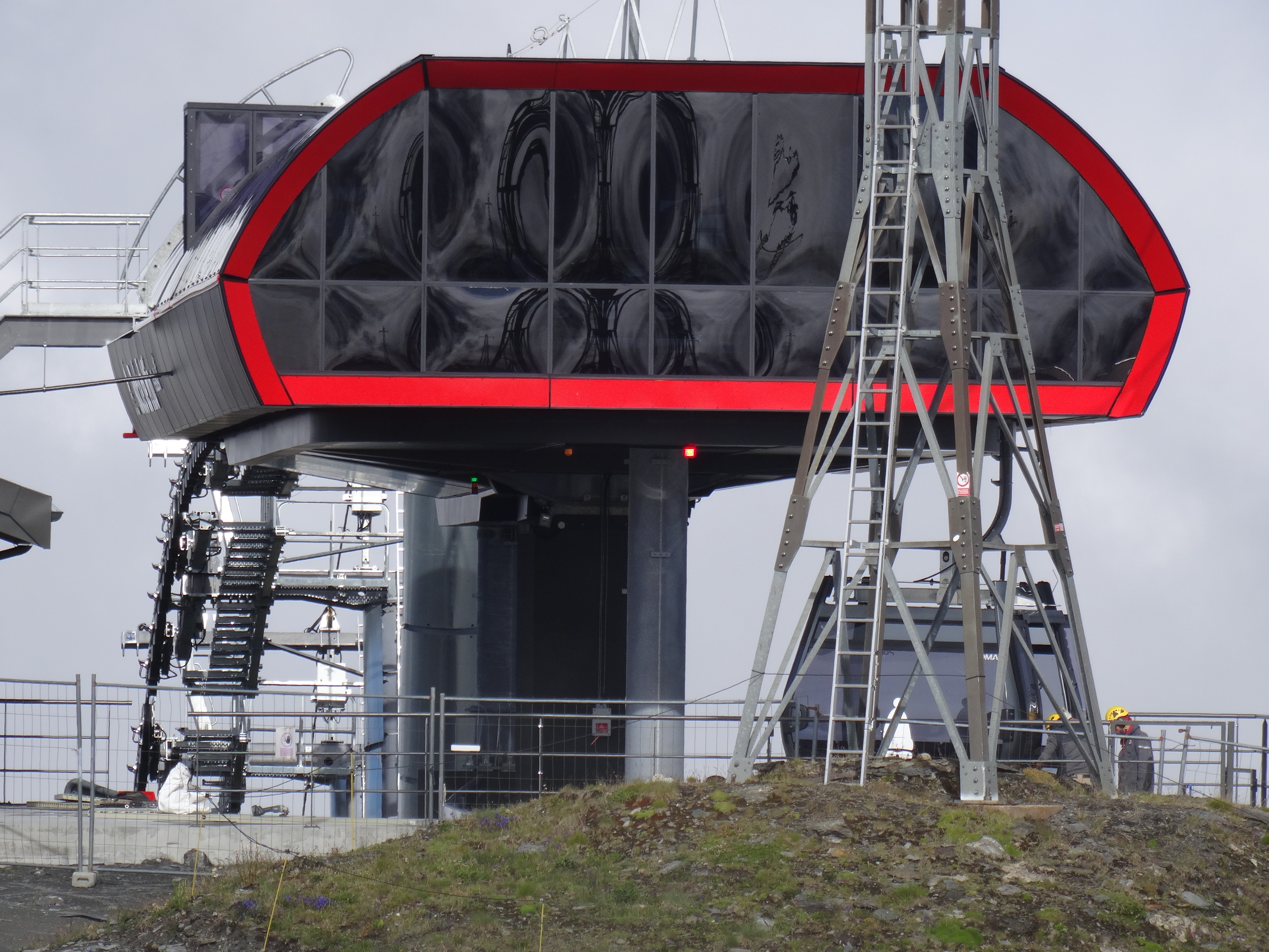 Essais avec une cabine au sommet du TC de RdM (deux techniciens sur le côté gauche)