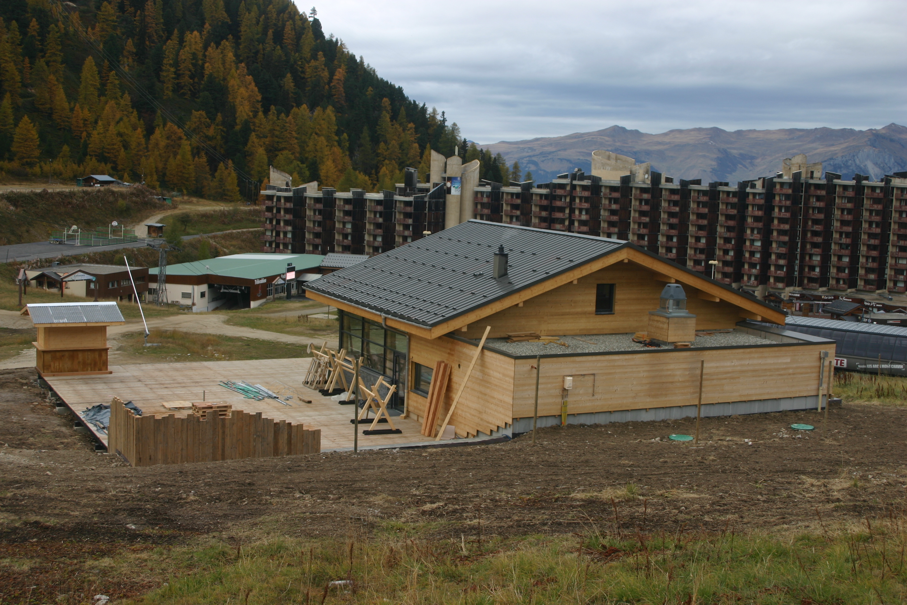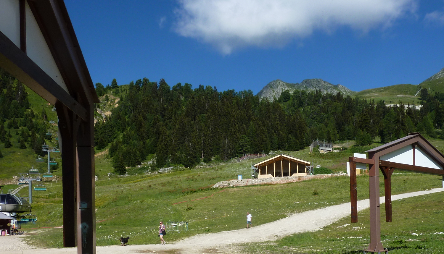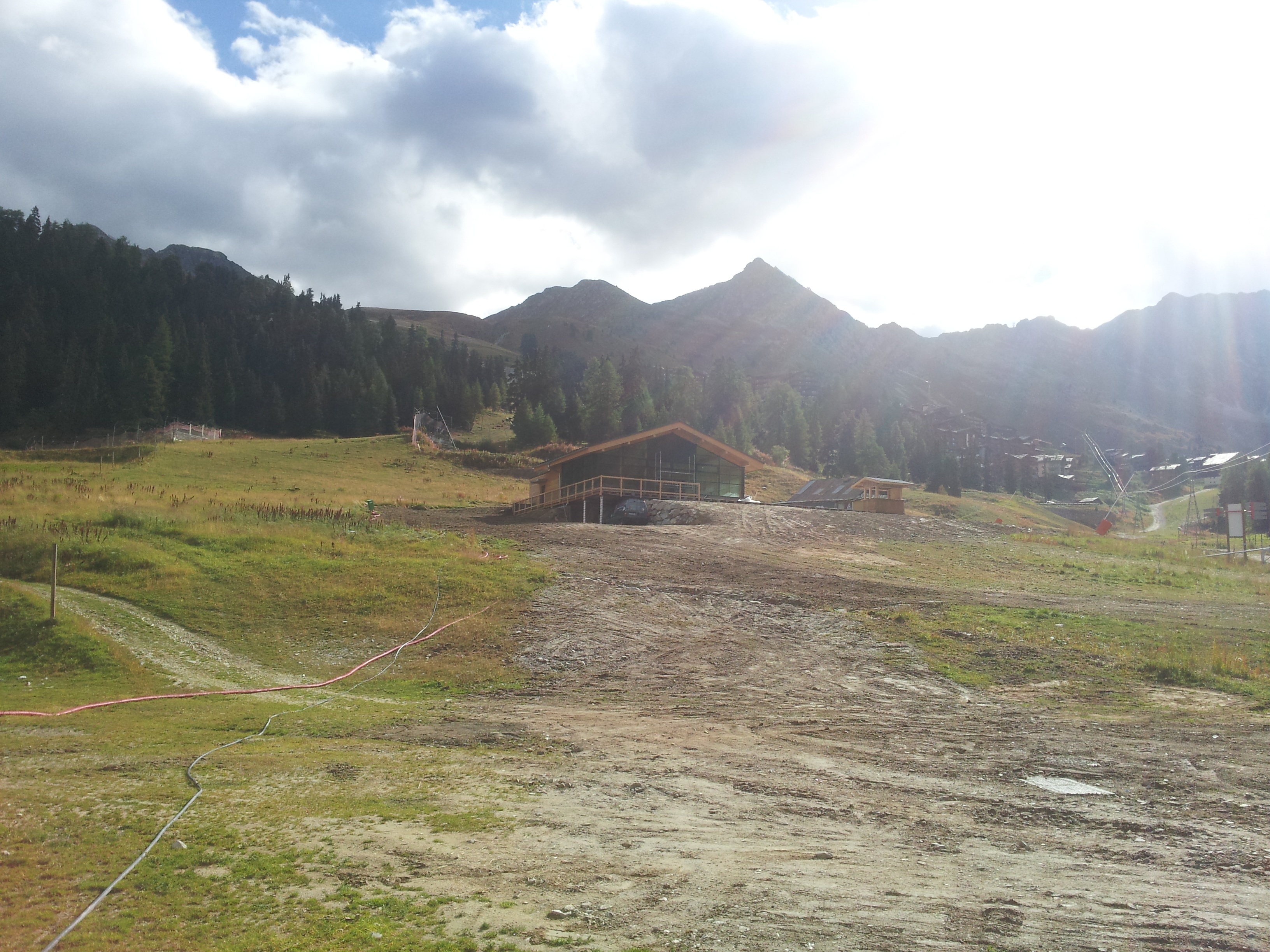 2 photos de plus du 7 août dernier pour vous aider à vous repérer. Le bâtiment est en aval du pont skieur, à hauteur du chalet des Moutons et il s'avance quasiment jusqu'à la moitié de largeur de la piste.