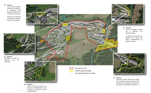 Pour visualiser, je mets l'image de l'OAP n°8: Question : qui sera supprimé, le bâtiment pour les saisonniers (secteur E) ou la construction de logements avec centre de mise en forme (secteur A) ?