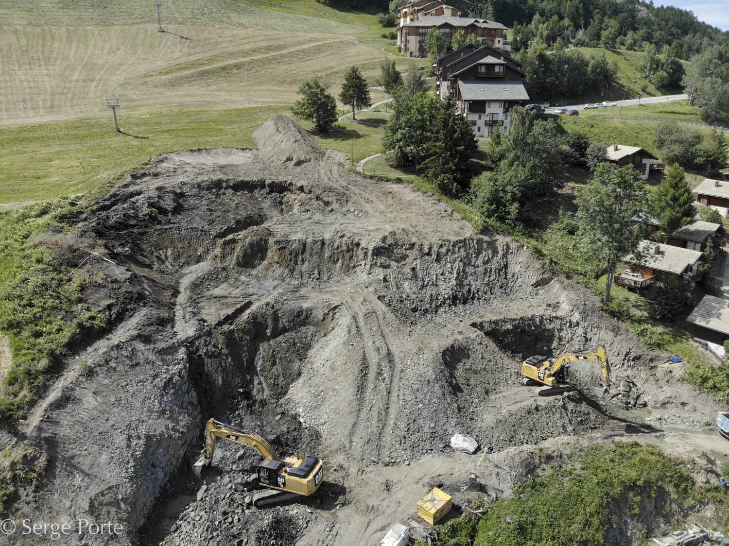 La terre est charriée par camions au dessus du Dou de la Ramaz. La piste est retravaillée. Les vacanciers doivent être heureux... d'un côté, les camions à proximité de la piscine, de l'autre les bulldozers et autres pour modifierr le profil de la piste (désolé, pas de photos).