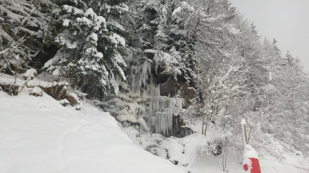 Un gros bémol pour les 500 derniers mètres des Ours à Vallandry : nombreuses plaques de glace entre les tas de neige des canons :