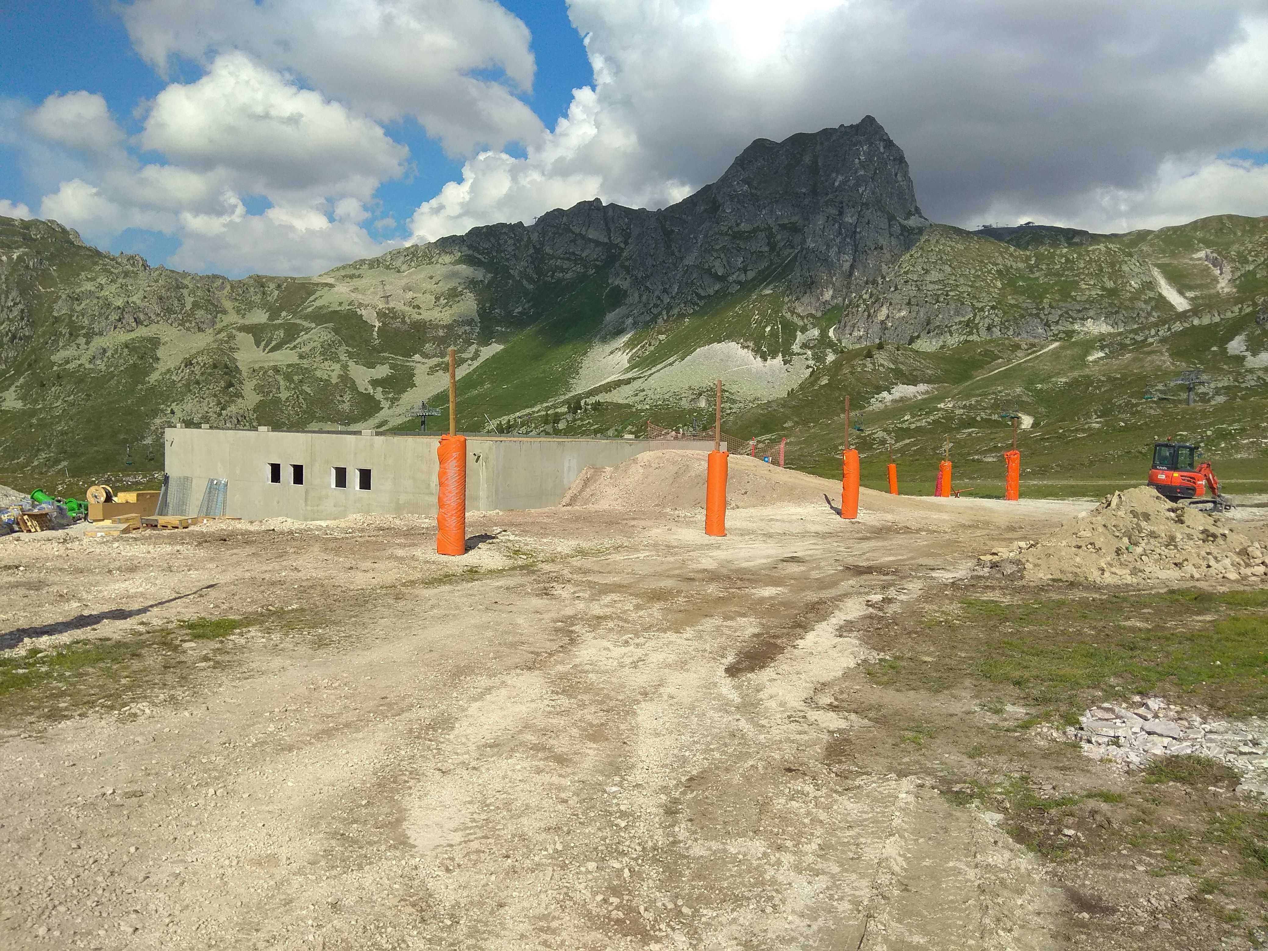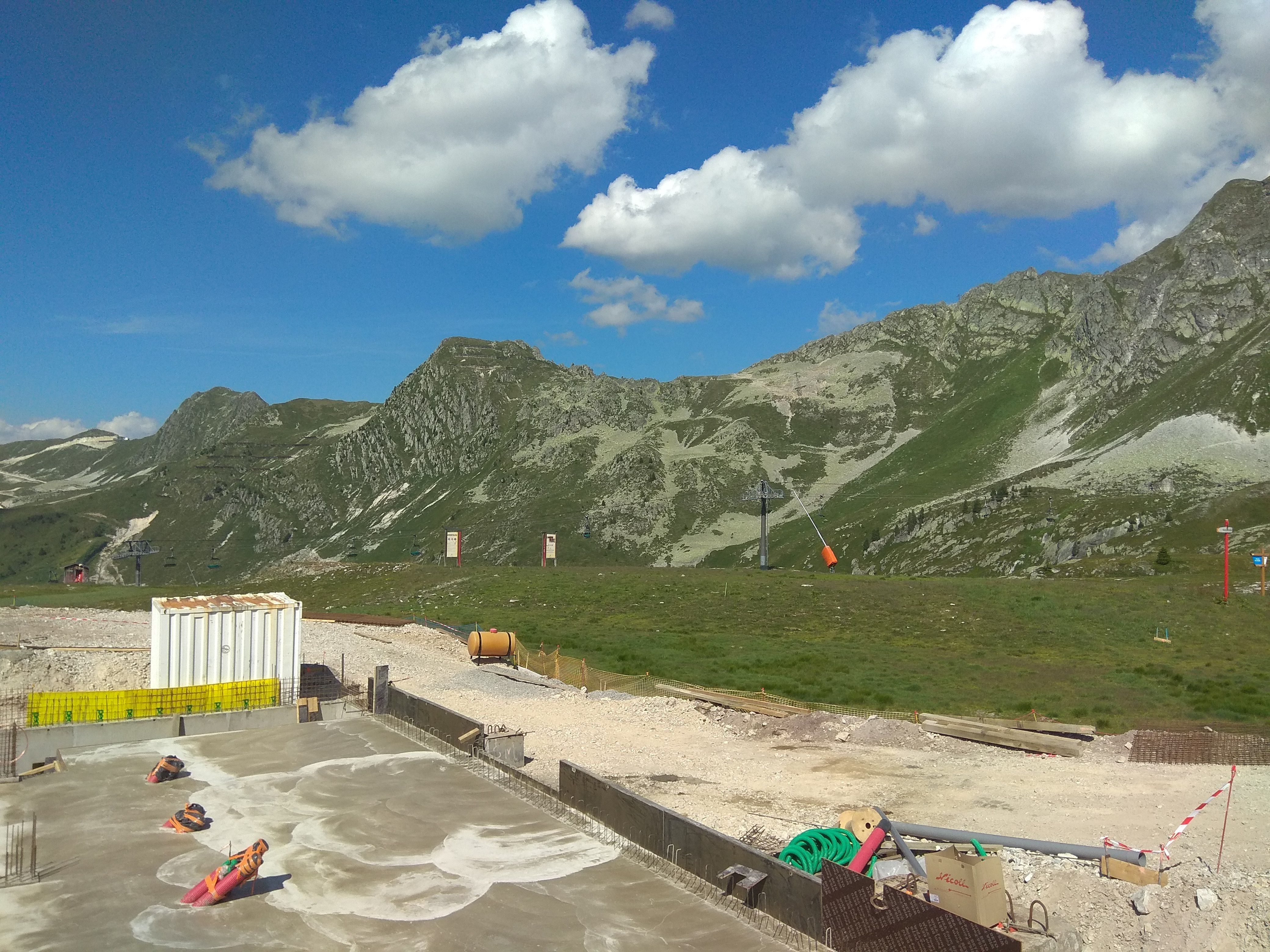 Le bâtiment (usine à neige) est bien avancé. L'entreprise Chevallier est sur place.