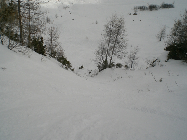 Oui la y'en avait et d'ailleurs sur le départ j'ai pas voulu passer à travers une car je pense >45° sur quelques mètres mais avec pas mal de neige et aucune trace et j'avais peur que cela casse un "gros" morceau de neige et purge un peu trop le couloir et pourquoi pas avec moi avec ...