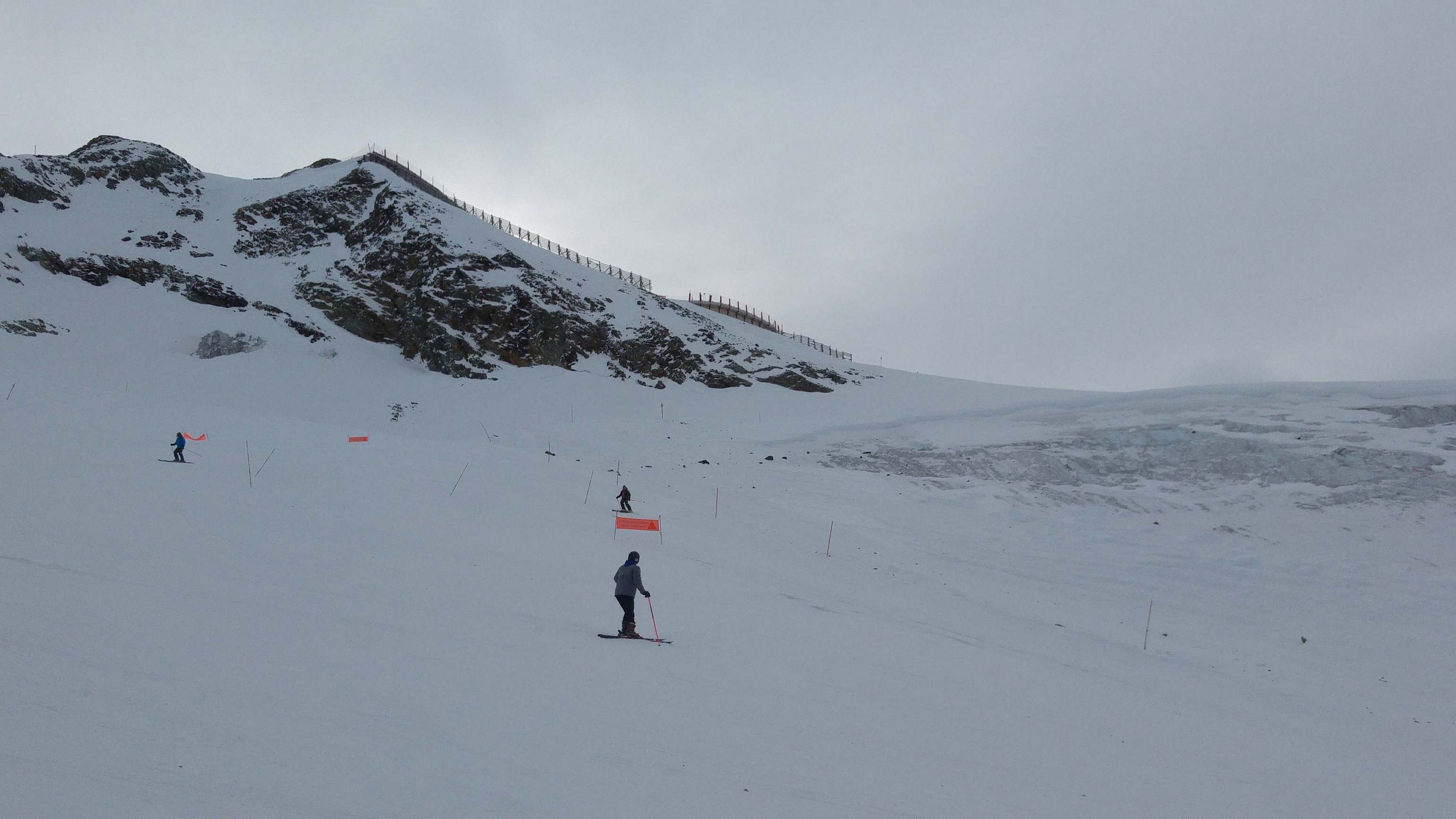 La neige accroche bien sur le petit mur de départ malgré l'indication :