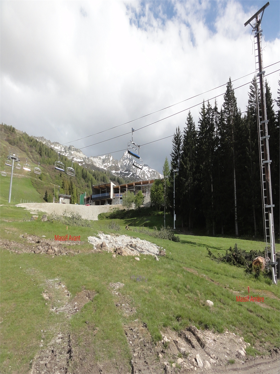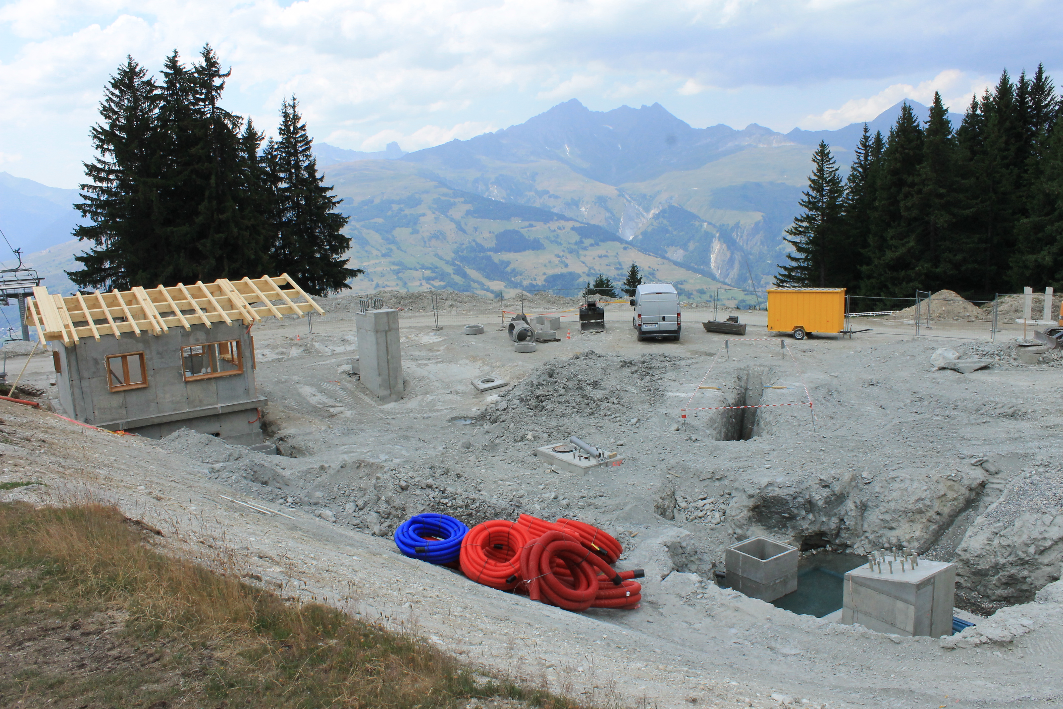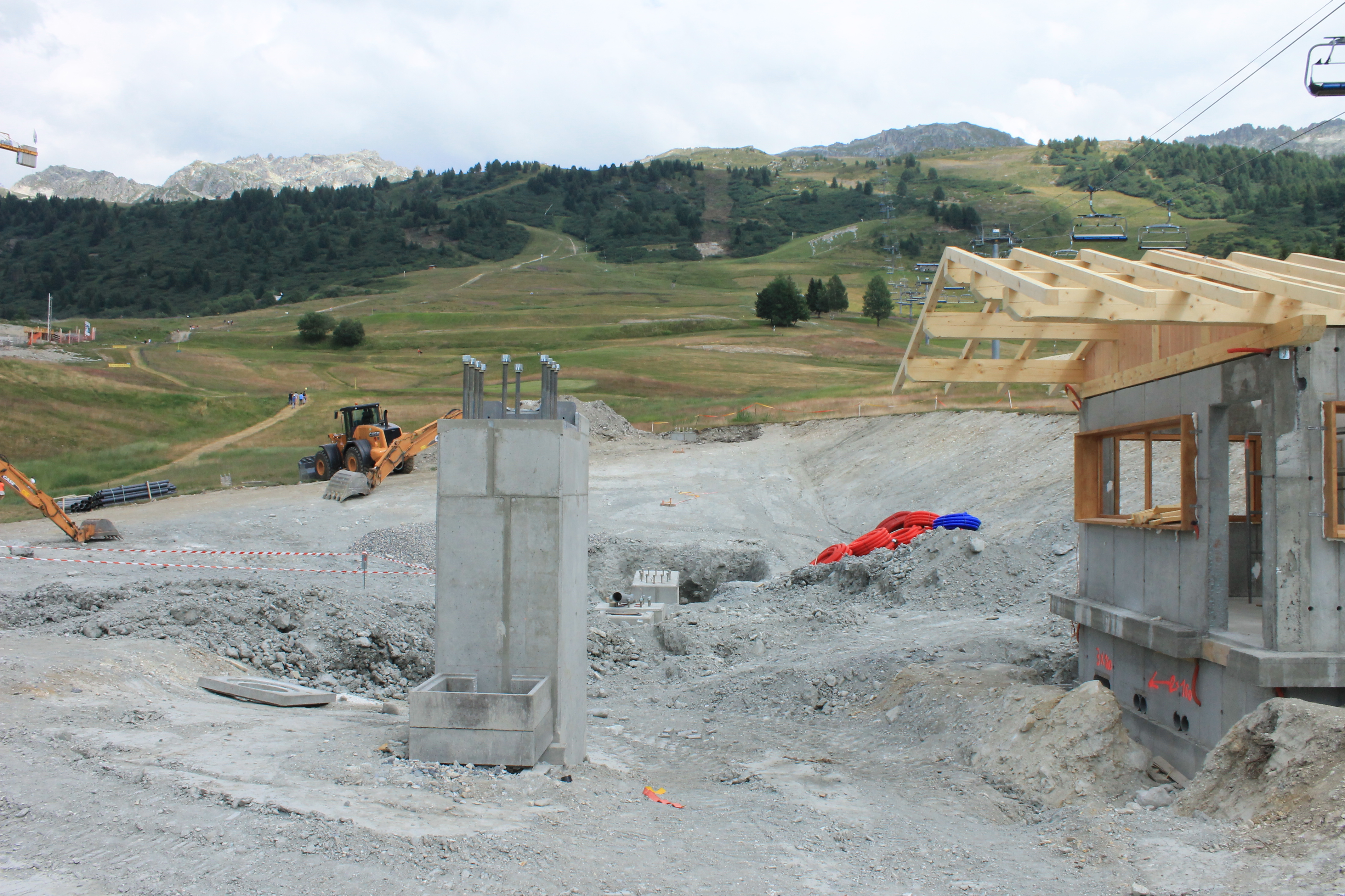 Voici 2 photos pas terribles des travaux du TSD, on peut y voir les fouilles pour un des pylônes, l'emplacement de la gare de départ du TSD, et que le bâtiment situé en haut du TC Villard a bien avancé...