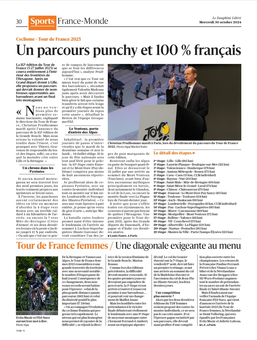 La montée sur La Plagne devrait donc se faire par MacotApple//GS a écrit : ↑29 octobre 2024, 14:31Yo! Déçu que le versant du soleil ne sera pas emprunté... Donc entre BSM et Aime, c'est uniquement par la N90 ( probablement pour favoriser les attaques) suivant le profil fourni par le Tour...Faut reconnaître que l'étape du Courchevel avec ses 5500m D + la veille, sera très dur et que le Tour ne pourrait pas rééditer un autre 5000m D+ en 2 journées consécutives !