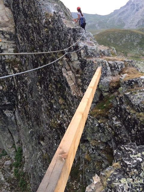 De retour à la maison, je peux poster les quelques photos que mon mari a prises lors du parcours de la via ferrata, qu'il a faite avec un guide de l'ESF Belle Plagne, Max, et nos deux enfants. Rien de très compliqué d'après eux, et ils l'ont faite en un peu plus de 2 heures.