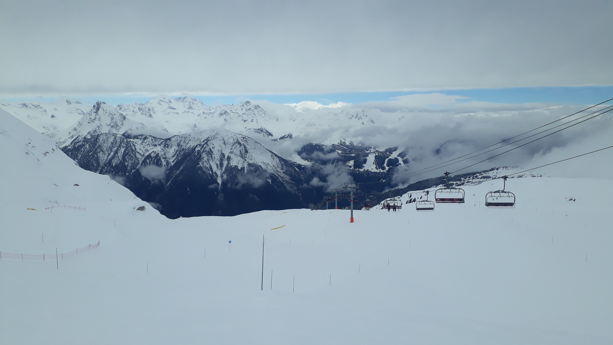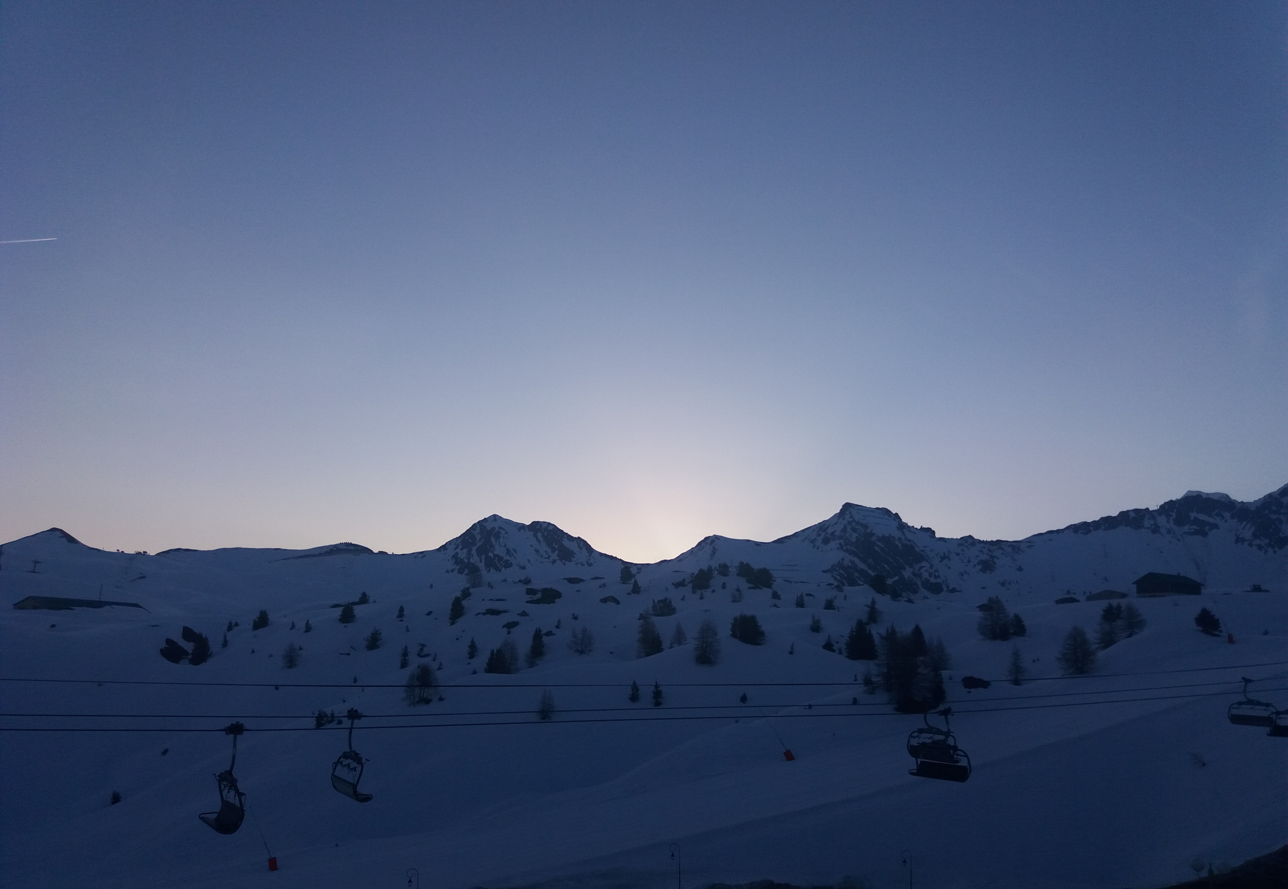 Photo 1 : Fin d'après midi sur La Plagne, vue depuis l'arrivée du TSD des Crozats (photo pas du jour)