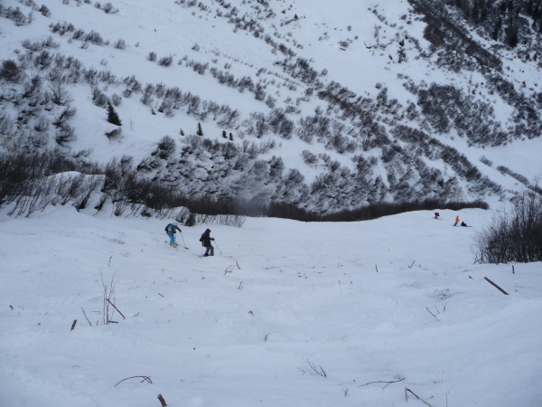 C'est une piste que j'aime bien faire justement pour son côté excentrée. Mieux vaut être plusieurs quand même car on est vraiment au fin fond du domaine ! Seul le mur principal risque de poser problème selon l'heure. Mieux vaut éviter le matin, ce sera sans doute dur. Il faut se lancer... Mais elle peut réserver des surprises !