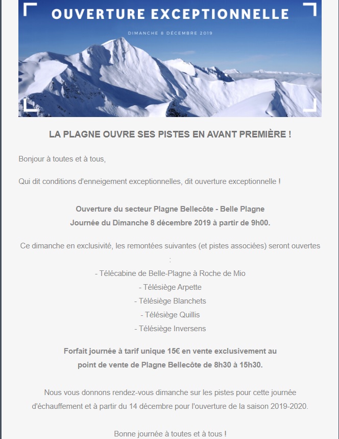 Excellente nouvelle !Rodolphe a écrit :Le domaine ouvre exceptionnellement le dimanche 8 sur le secteur bellecote Roche de mio