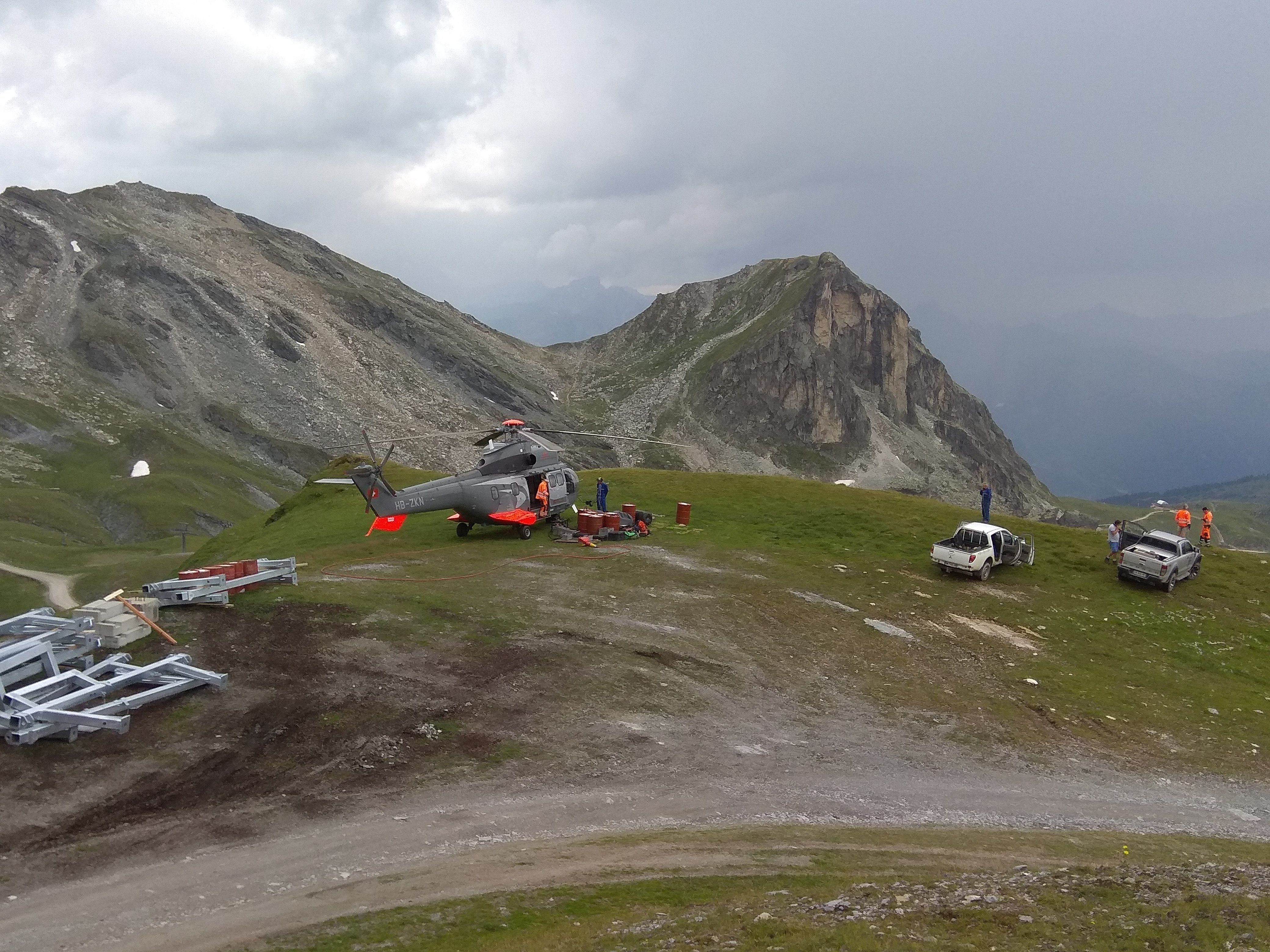 Et ne pas oublier les équipes qui courent de massif en massif pour monter sur les pylônes et les assembler. C'est un sacré ballet très minuté...