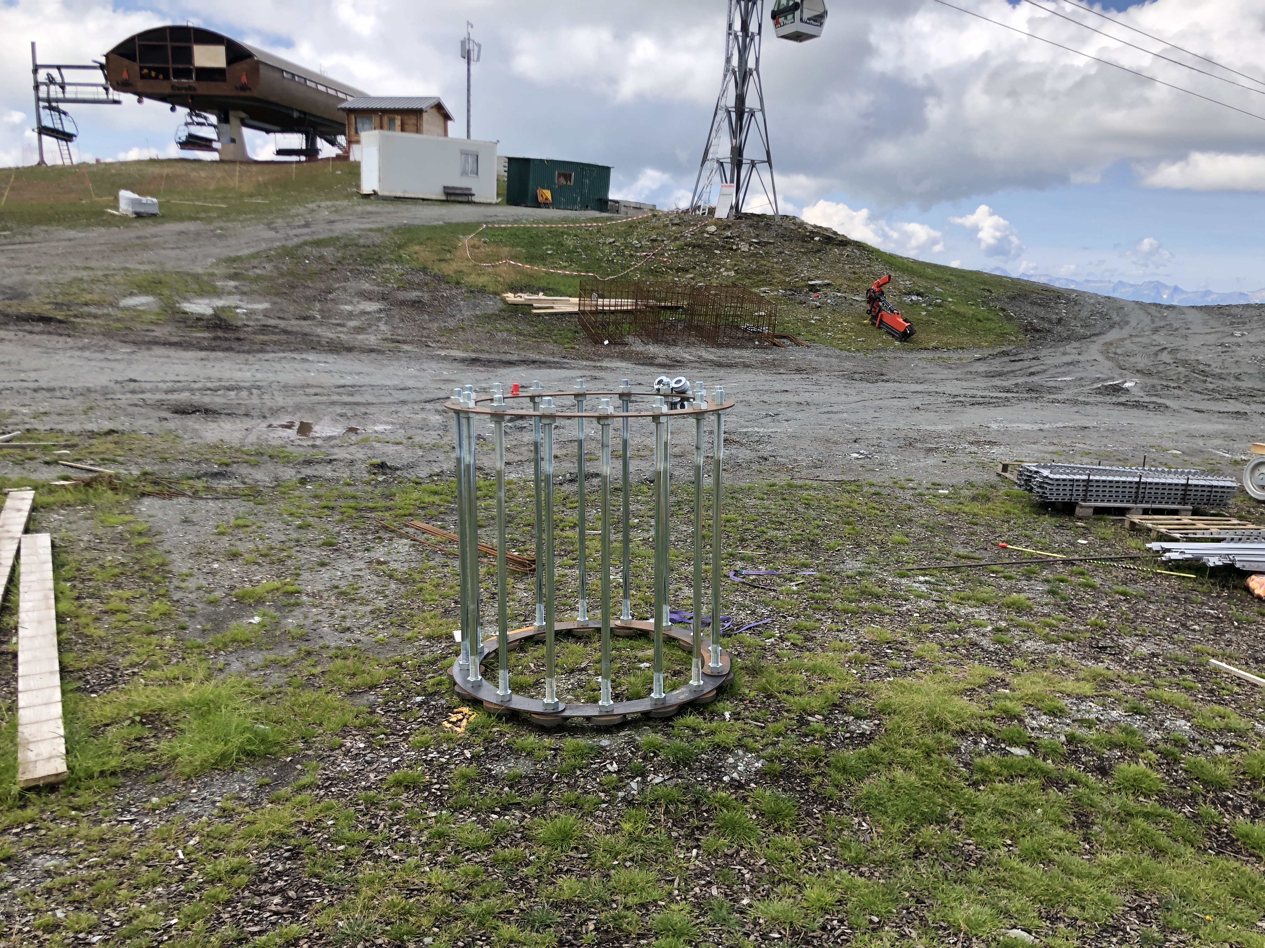 Il reste un pylône sur le parking de Plagne Villages : un oubli, une pièce de rechange...