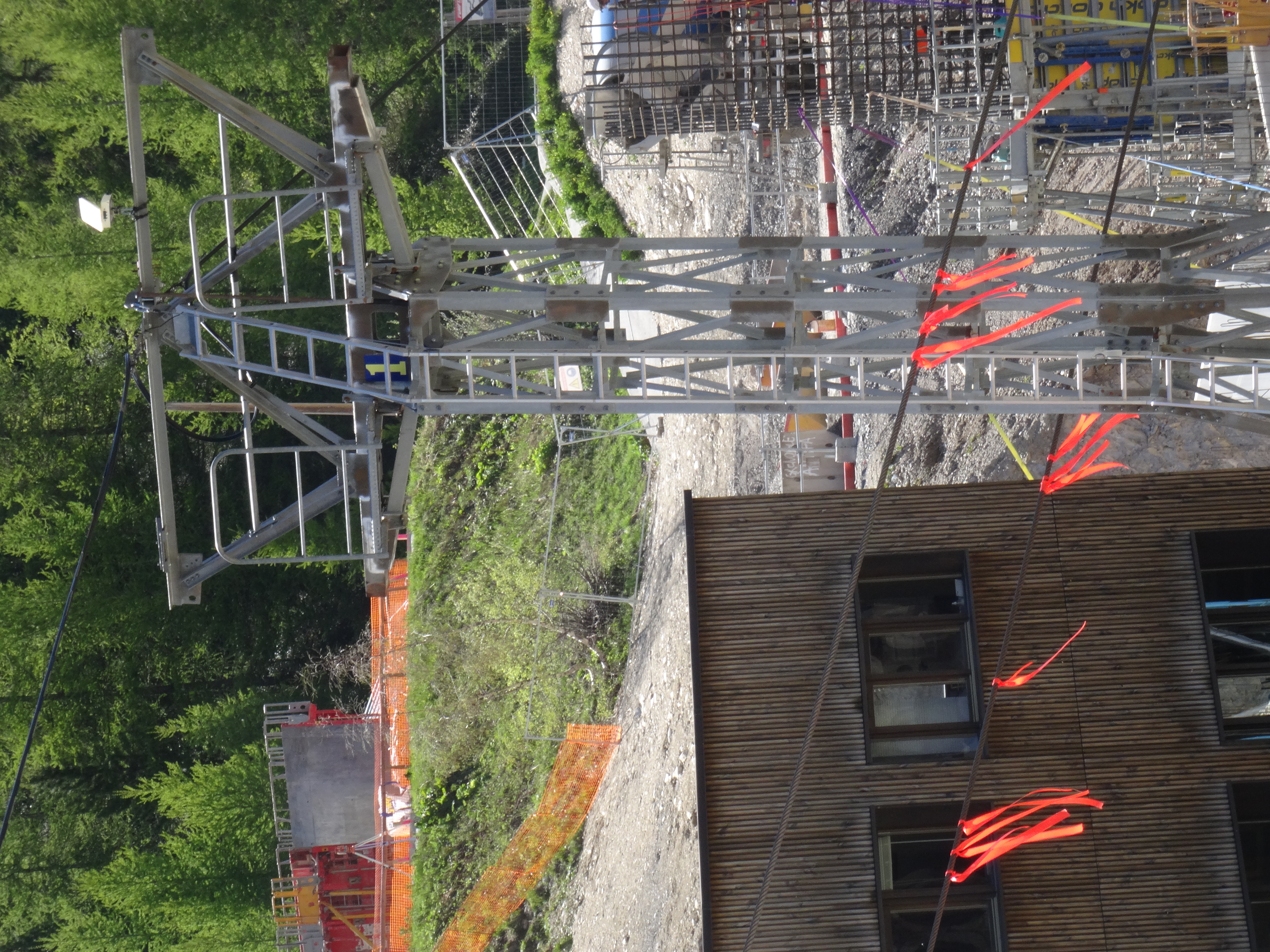 La plupart des pylônes ne sont pas encore équipés de leurs balanciers, ces derniers sont actuellement stockés à BC, juste au-dessus de l'ancien golf