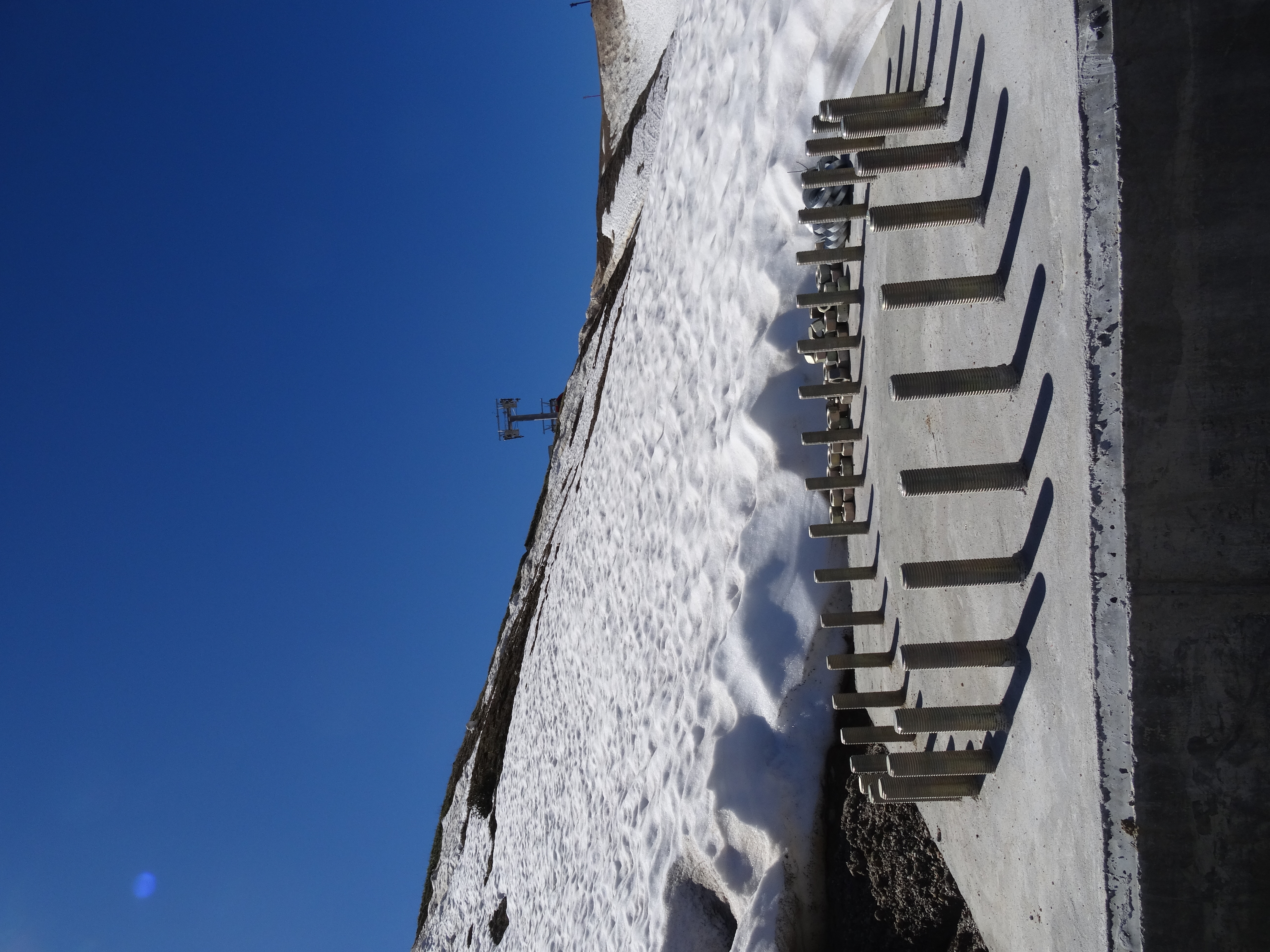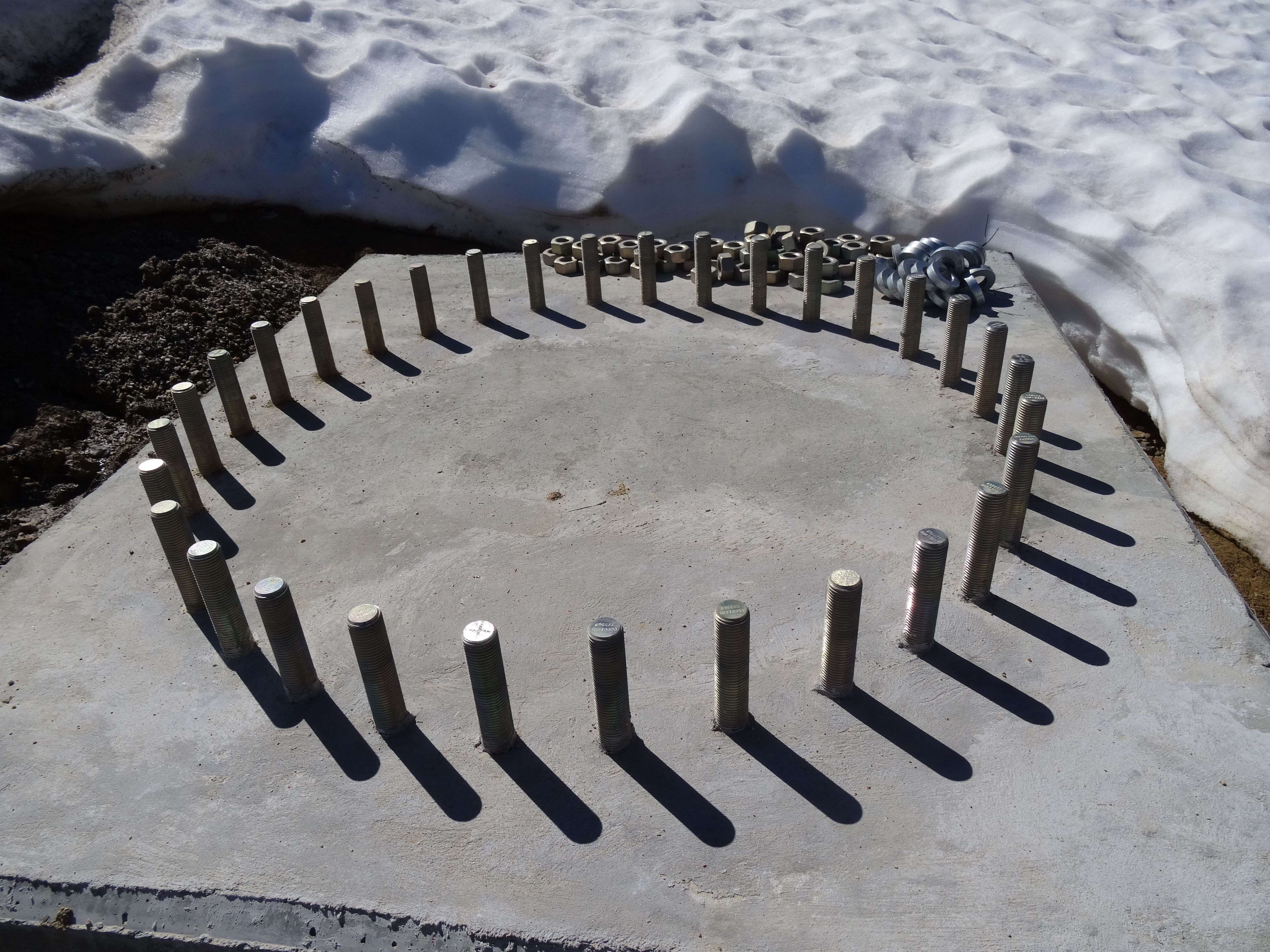 Certains n'ont pas encore été hélitreuillés, notamment sous la gare intermédiaire de Forcle. On peut voir des massifs de bétons avec les écrous et contre-écrous prêts à être vissés.
