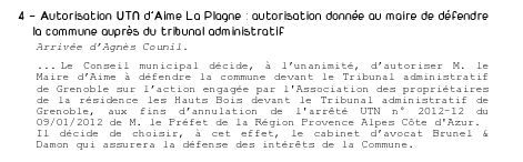 Dans le CR du conseil municipal d'Aime du 14 janvier 2013 , il y a ceci :