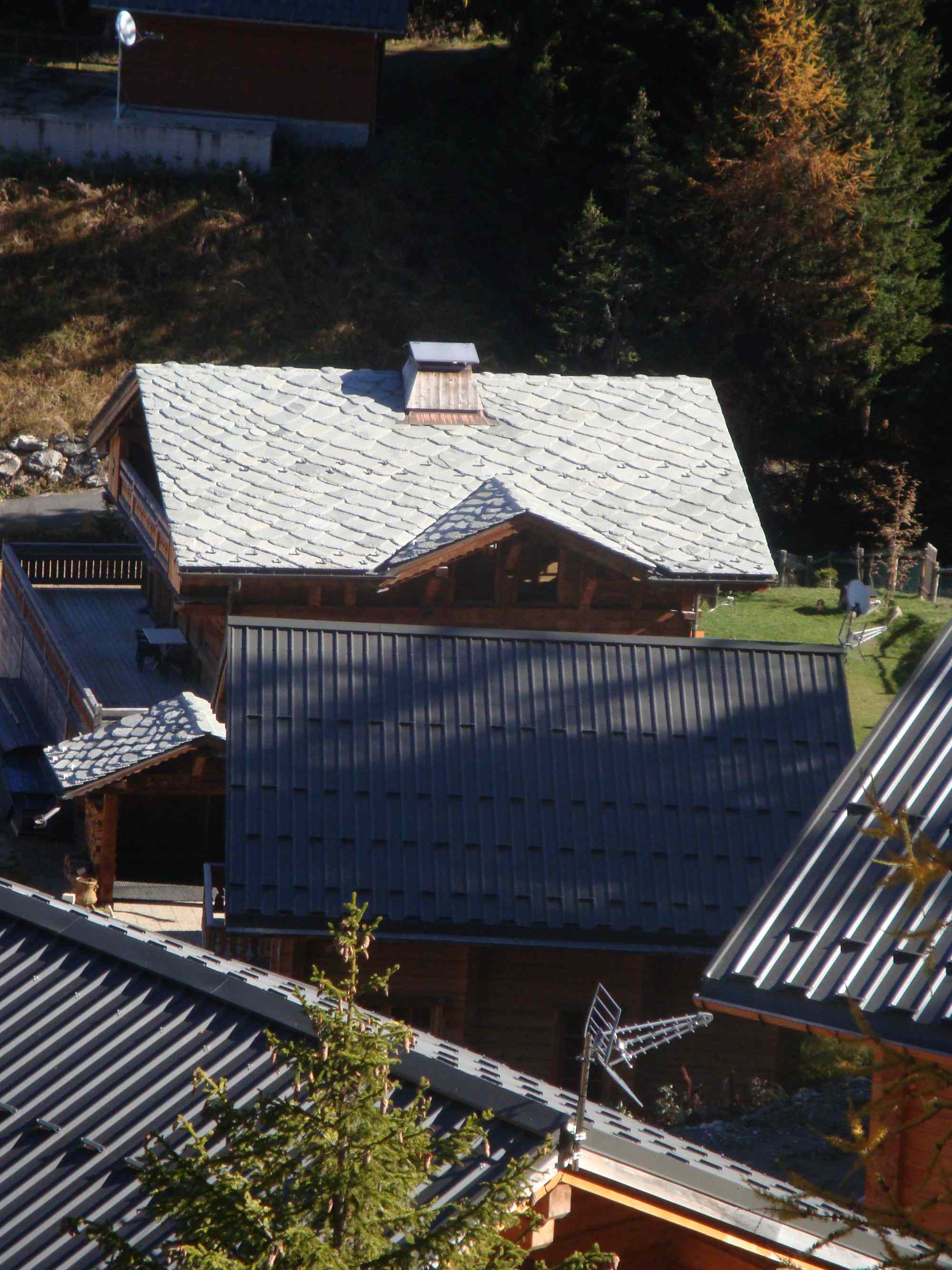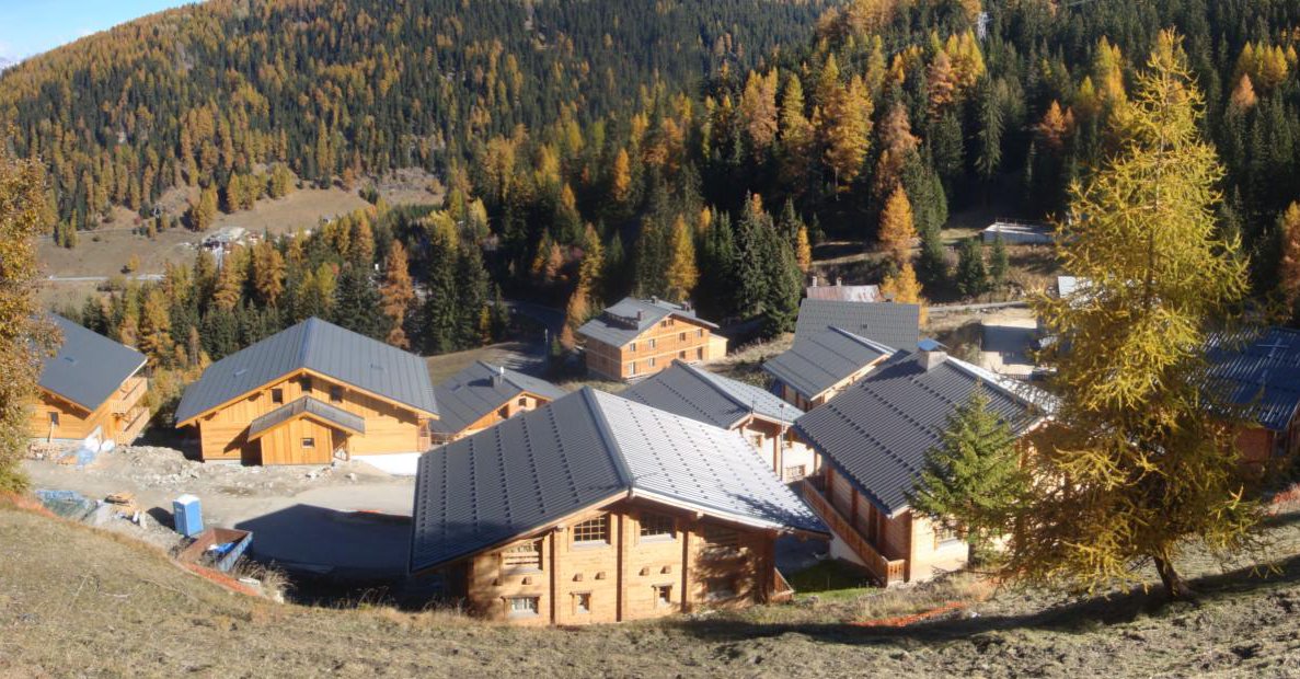 Normal le chalet qui a un toit en lauze ne fait pas partie du programme et était là avant.