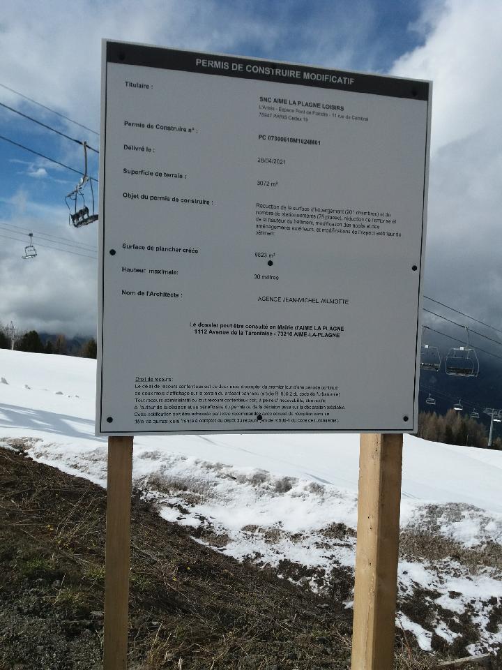 Un nouveau panneau a l'arrivée d'Aime 2000 . Réduction du bâtiment visiblement ?