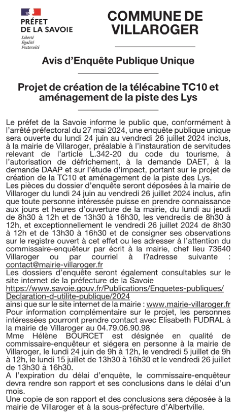 Aussi, la commune a demandé au préfet d’engager une enquête publique pour la création de la servitude du domaine skiable fusionnée (CR du CM du 13 novembre 2023)