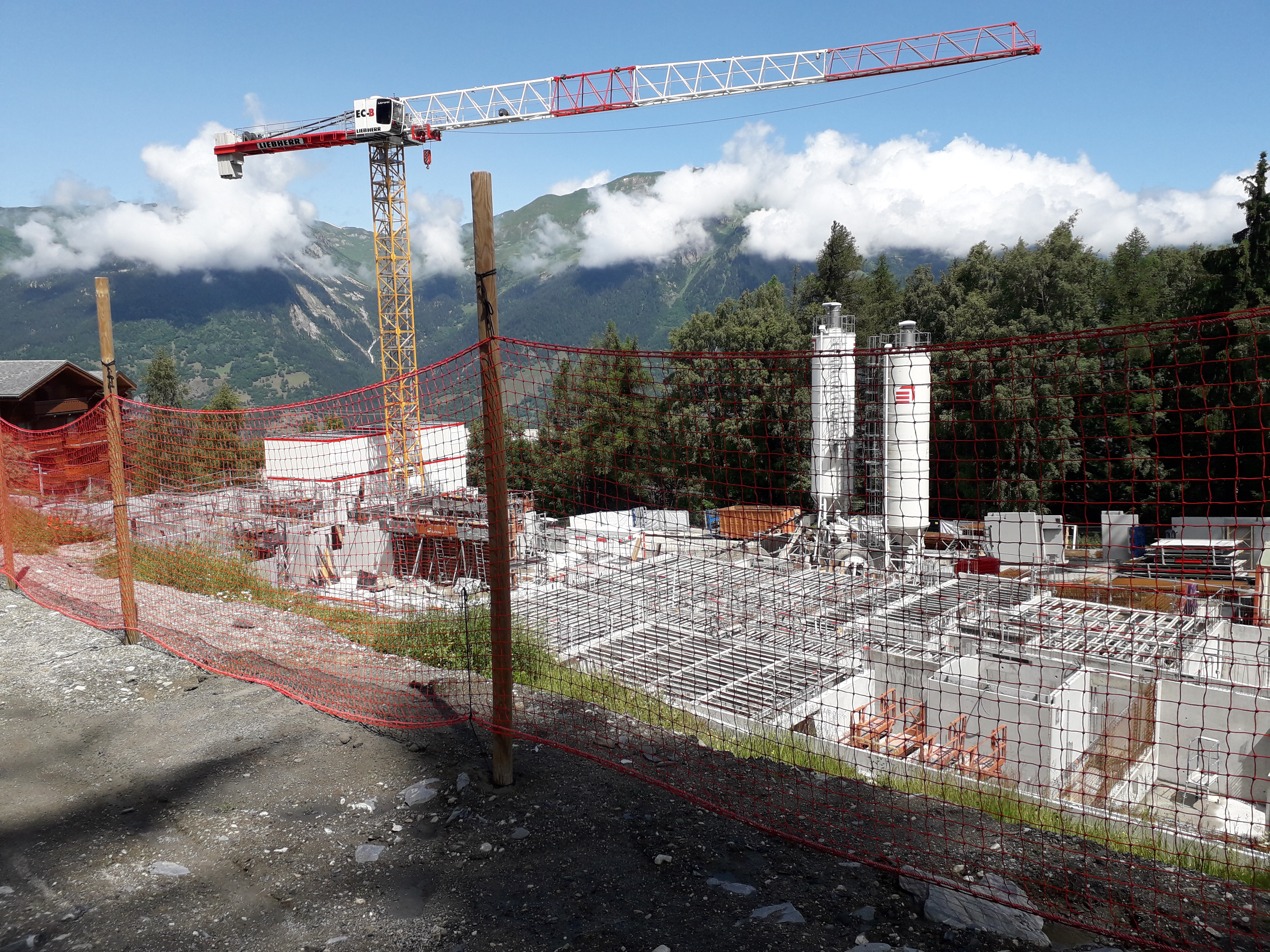 Quelques photos de la construction d'une résidence à l'arrivée de la piste Pravendue à Montalbert (à l'emplacement d'un parking sur les hauteurs de la station).