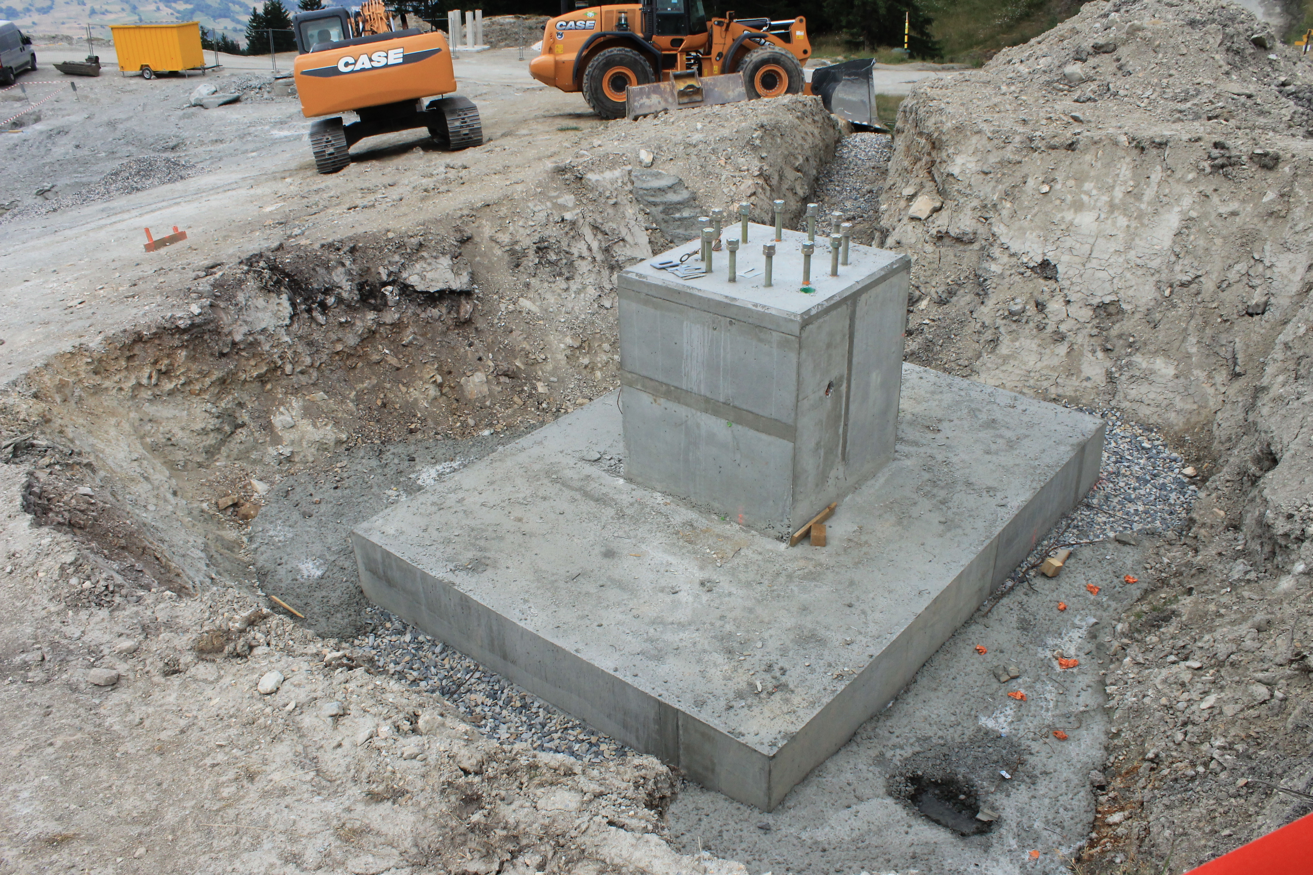 Voici 2 photos pas terribles des travaux du TSD, on peut y voir les fouilles pour un des pylônes, l'emplacement de la gare de départ du TSD, et que le bâtiment situé en haut du TC Villard a bien avancé...