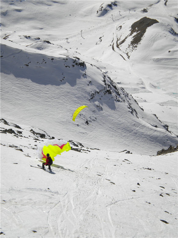 Dans le même genre (il s'agit ici de kytesurf), photo prise de l'Aiguille Rouge le 9 avril dernier.