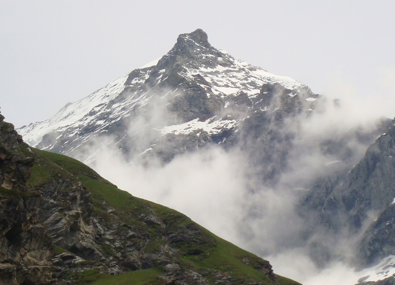 Vu d'en dessous... alors que le soleil semble nous quitter définitivement, le jour blanc s' installe Au sommet de cette arête... un grand pas pour franchir la faille !! Après le sommet, traversée d'une falaise sur une vire équipée, pour rejoindre le sentier Les dégats d'une avalanche, dans le couloir que traverse le chemin de retour... Fin vers 13h. Des nuages commencent à accrocher le "Pourri"... Il tombait des cordes en début de soirée. Faut bien viser pour en profiter, de ce printemps... pourri.