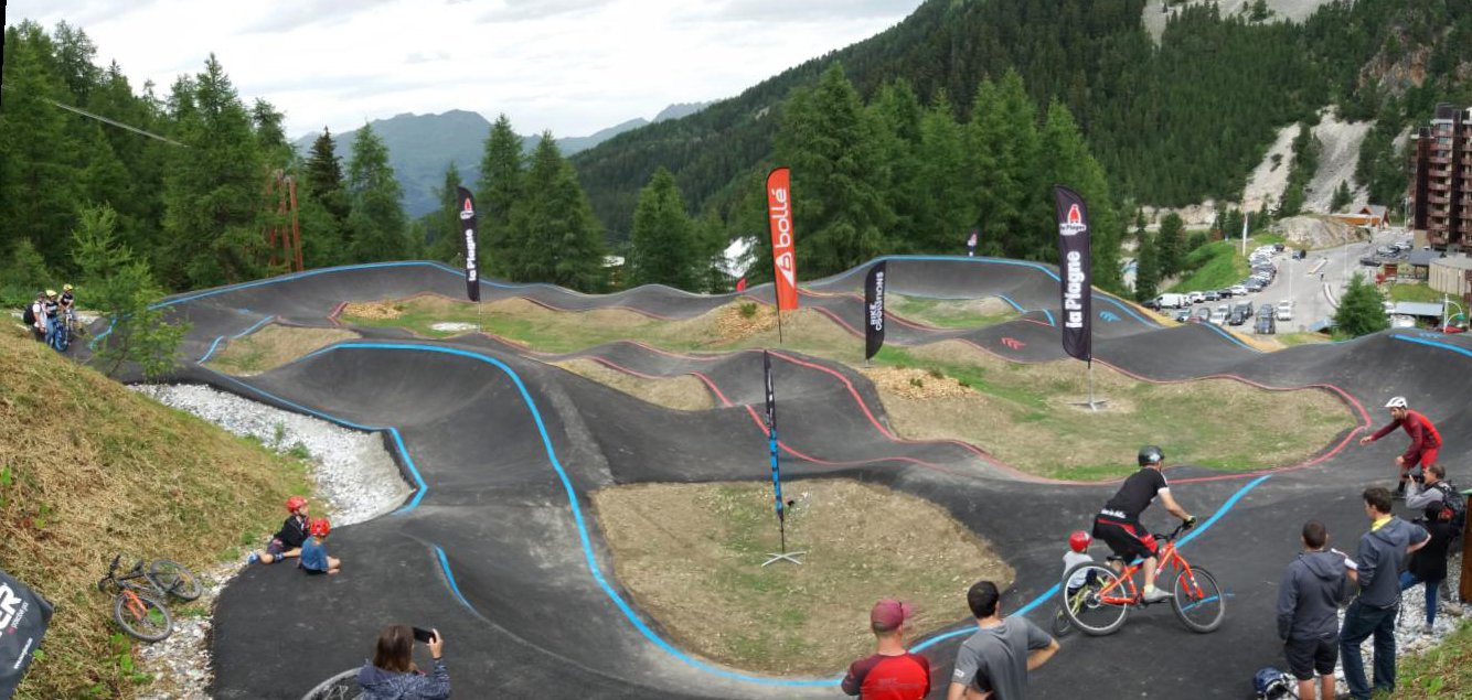 Pour 2017, la commune de La Plagne Tarentaise a souhaité poursuivre son investissement dans le développement du VTT sur la station en créant un espace Pumptrack de 1300 m² à Plagne Bellecôte. Trois magnifiques parcours seront ainsi proposés dès cet été : initiation (300 m², longueur 50m) et sensation sur deux pistes niveaux bleu et rouge (1000 m², longueur 200m). Les amateurs de sensations de tous les âges et de tous les niveaux, pourront ainsi découvrir ce nouveau terrain de jeu en VTT, BMX, trottinette, skateboard, roller ou draisienne. En accès libre, le pumptrack est idéalement installé à l’emplacement de l’ancien centre équestre à proximité des parkings, hébergements .
