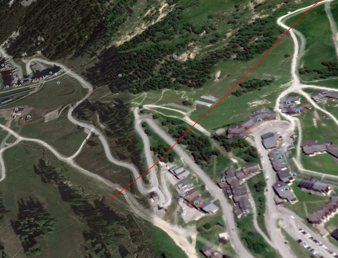 - du côté de la piste Belle Plagne, au niveau du pylône de la télécabine Bellecôte/BP (qui est supprimée à l’occasion), pylône au milieu de la piste,