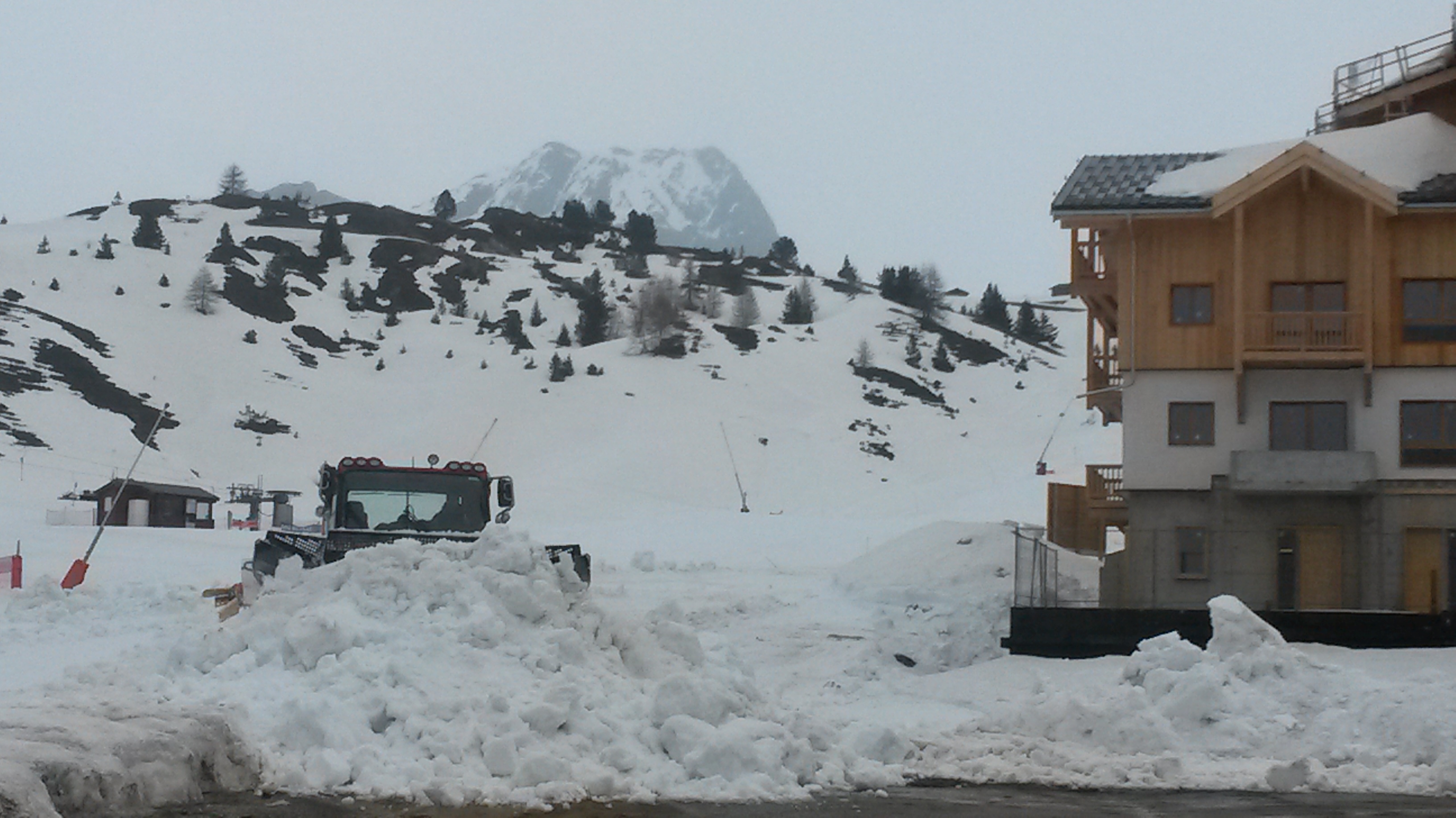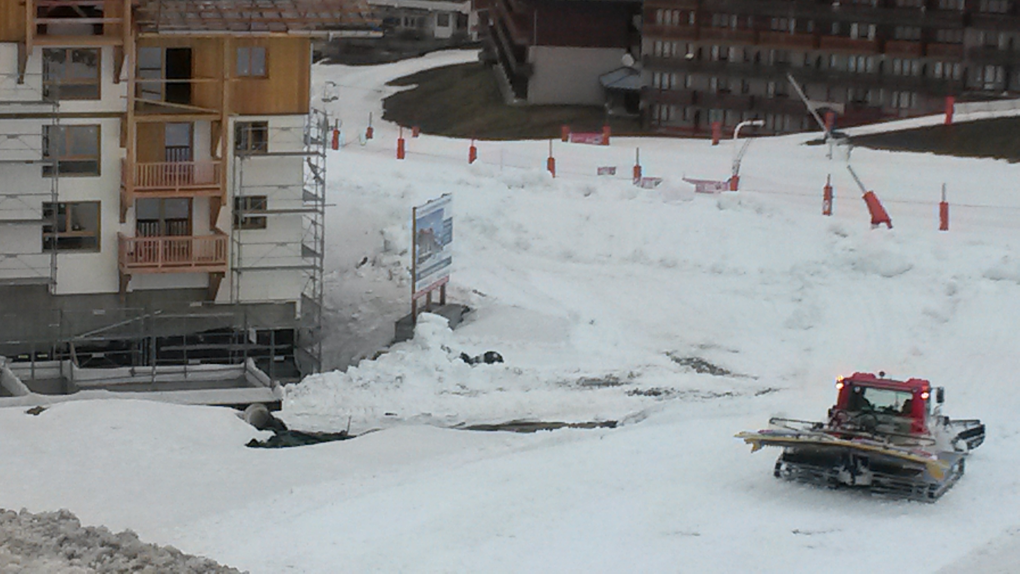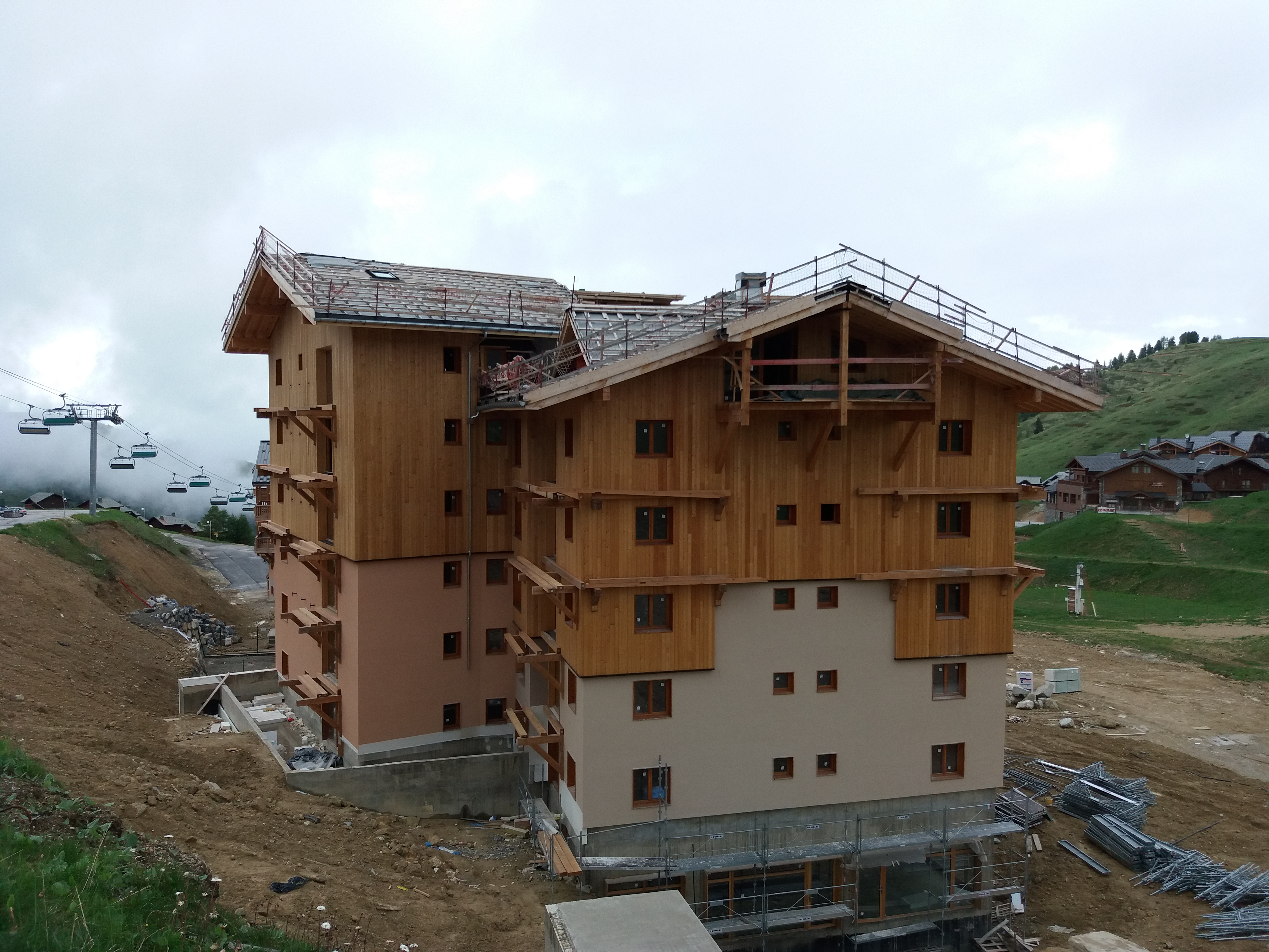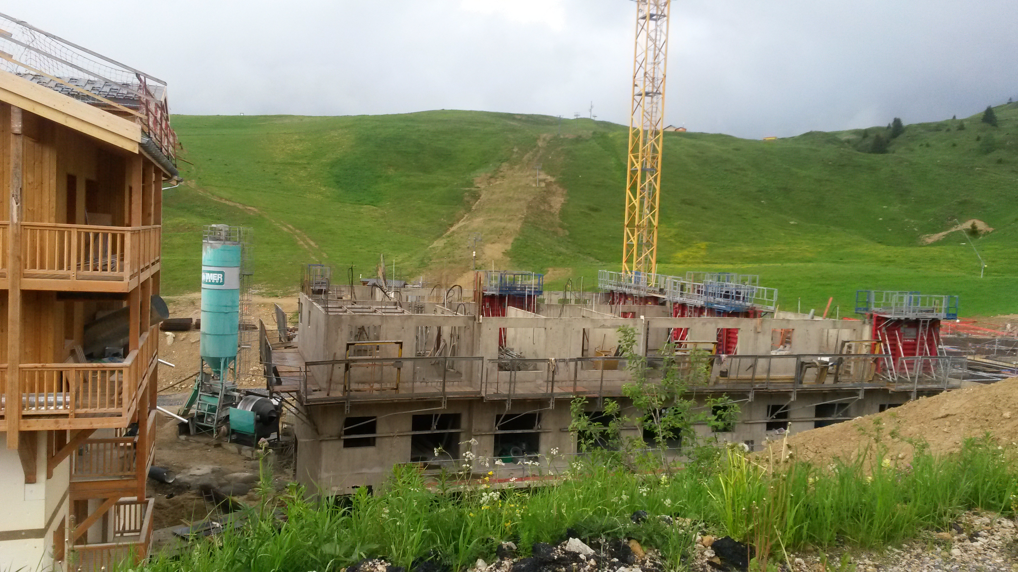 Les travaux n'ont pas vraiment arrêté... avec notamment la pose des balcons dès les beaux jours, avant même la fermeture de la station. Le dernier jour de damage des pistes en avril, une dameuse est venue retirer la neige accumulée autour de la résidence pour accélérer la reprise des travaux et le commencement de la deuxième tranche.