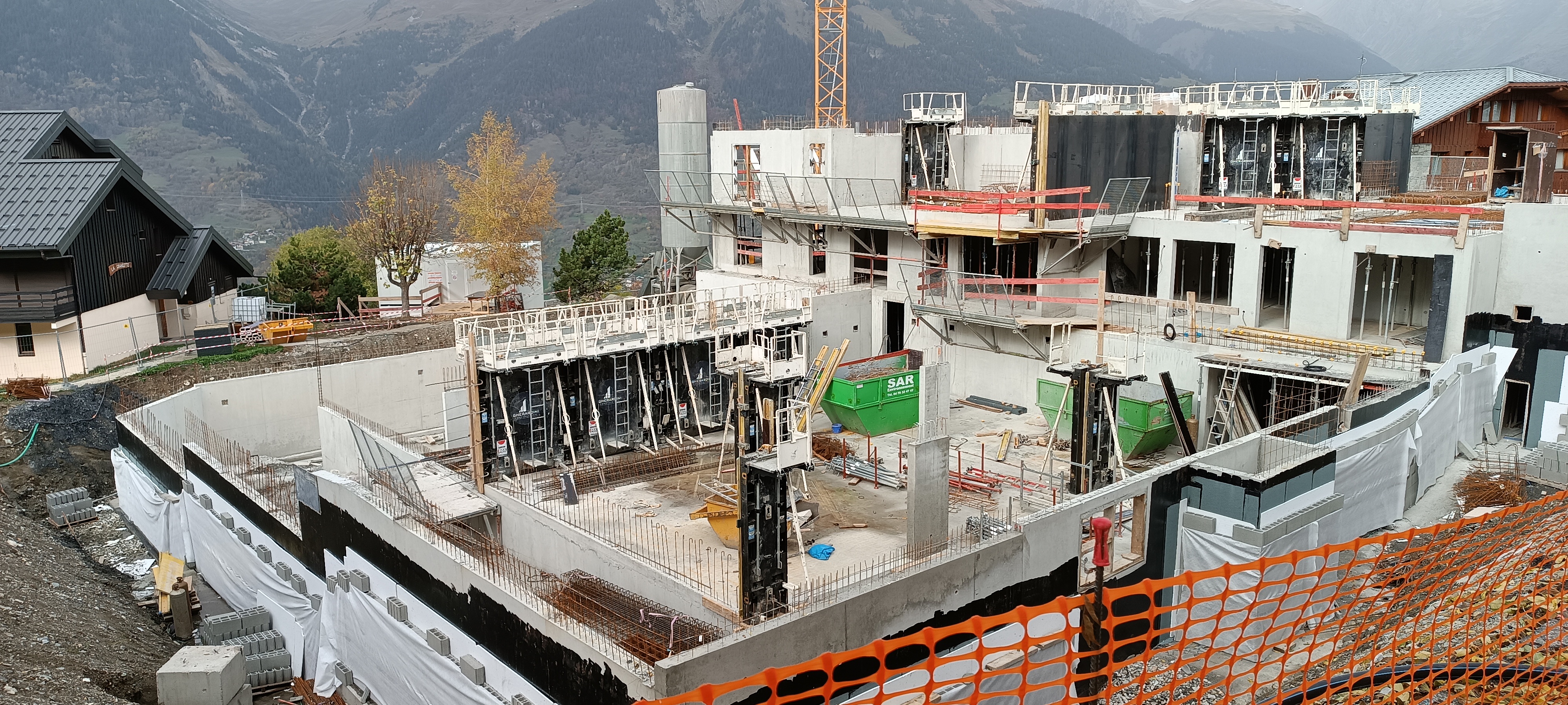 Le mieux , est d'aller voir par le biais de la webcam la ruine in situ et se rendre compte que ce n'est que le quart moins 3 niveaux du programme qui est réalisé actuellement; tout ce qui est représenté en avant sur la perspective de vente ( restau ,piscine ,spa,)viendra jouxter la résidence existante,(et non le sapin dessiné) et la partie arrière masquera pour partie le Chanteloux, pour "flirter" avec La lauziere.......un sacré pavé en fait.... mais ?? quels parkings de prévus ????